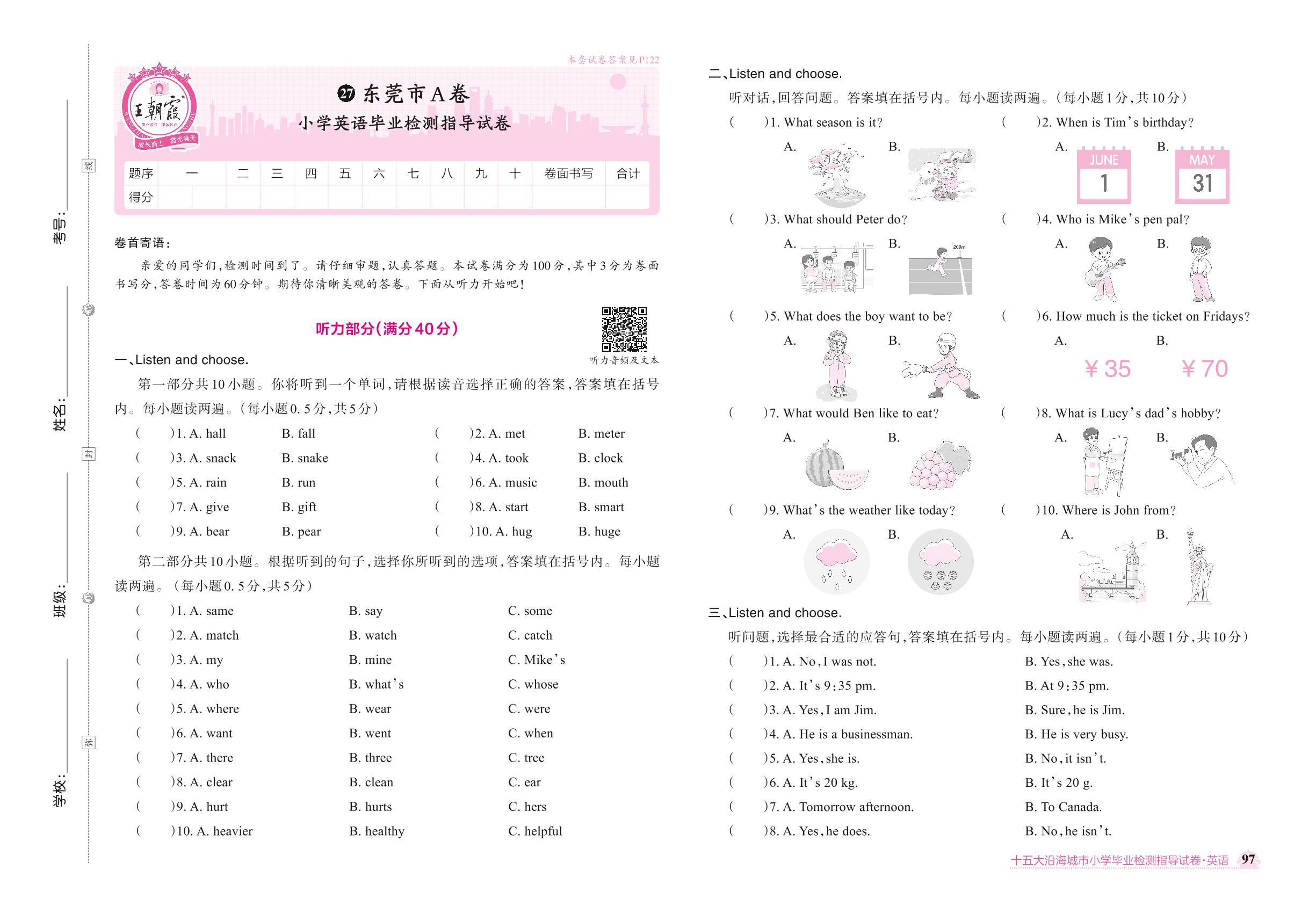 东莞市A卷小学英语毕业检测指导试卷【27】