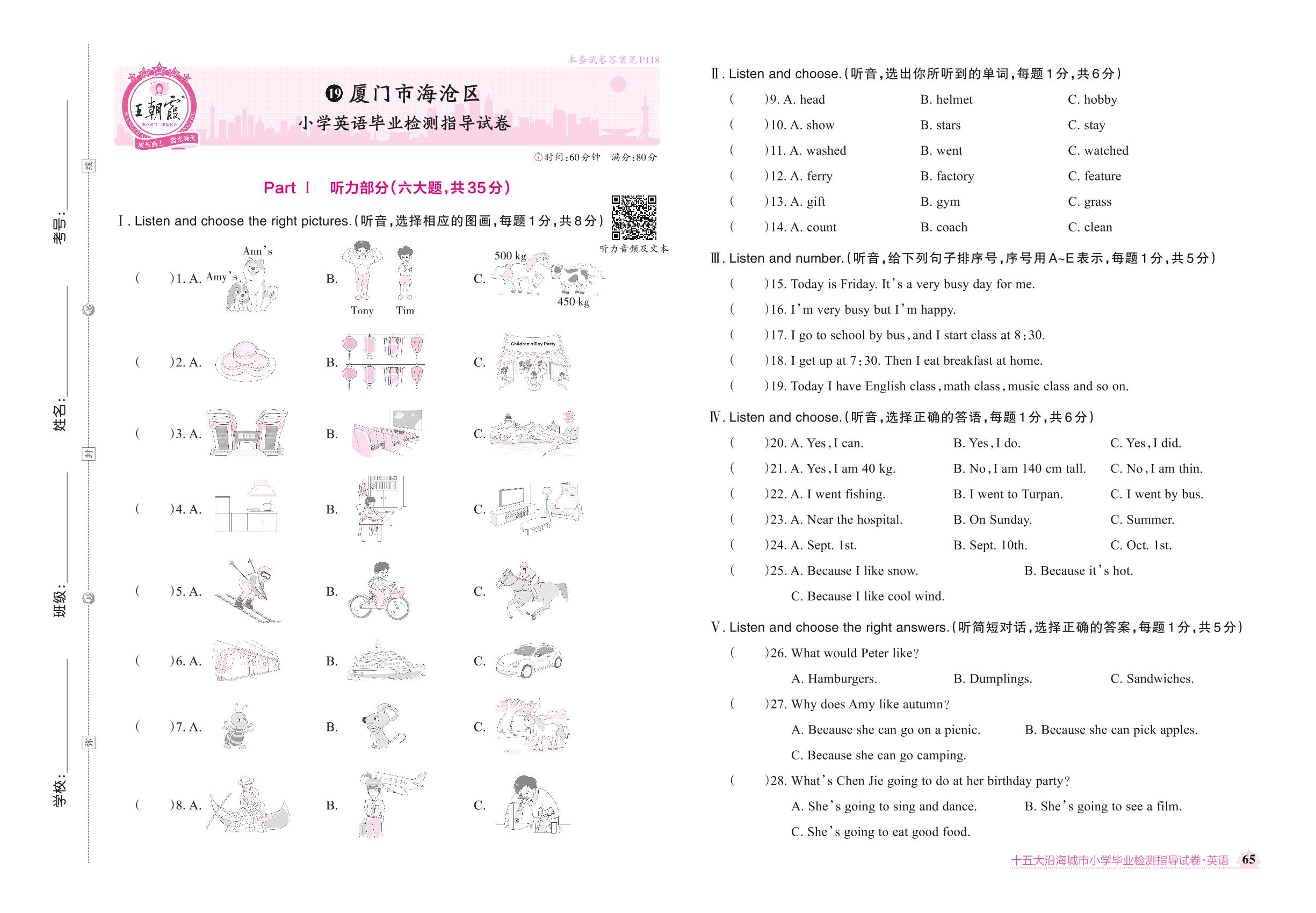 厦门市海沧区小学英语毕业检测指导试卷【19】