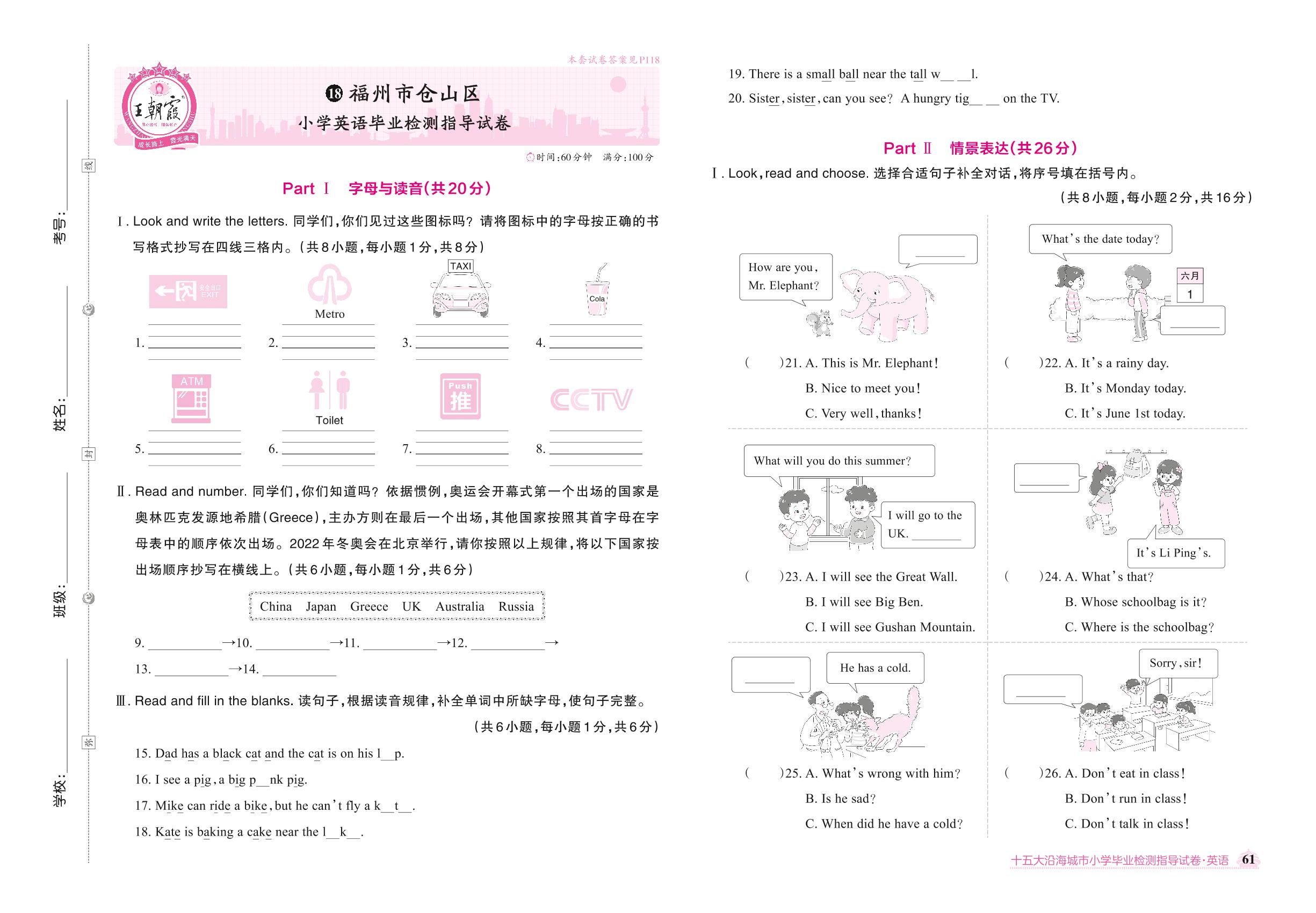 福州市仓山区小学英语毕业检测指导试卷【18】