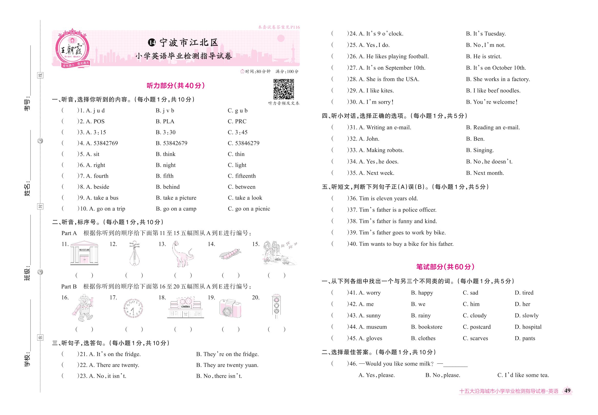 宁波市江北区小学英语毕业检测指导试卷【14】