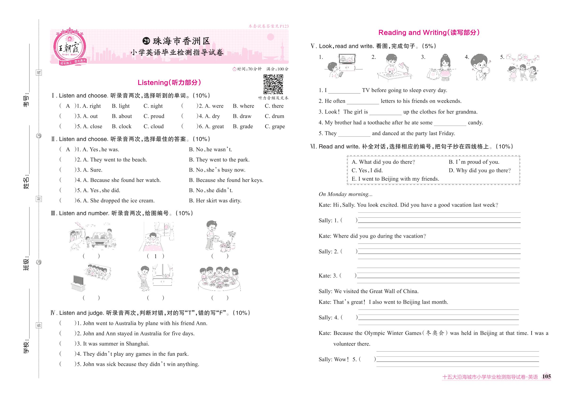 珠海市香洲区小学英语毕业检测指导试卷【29】