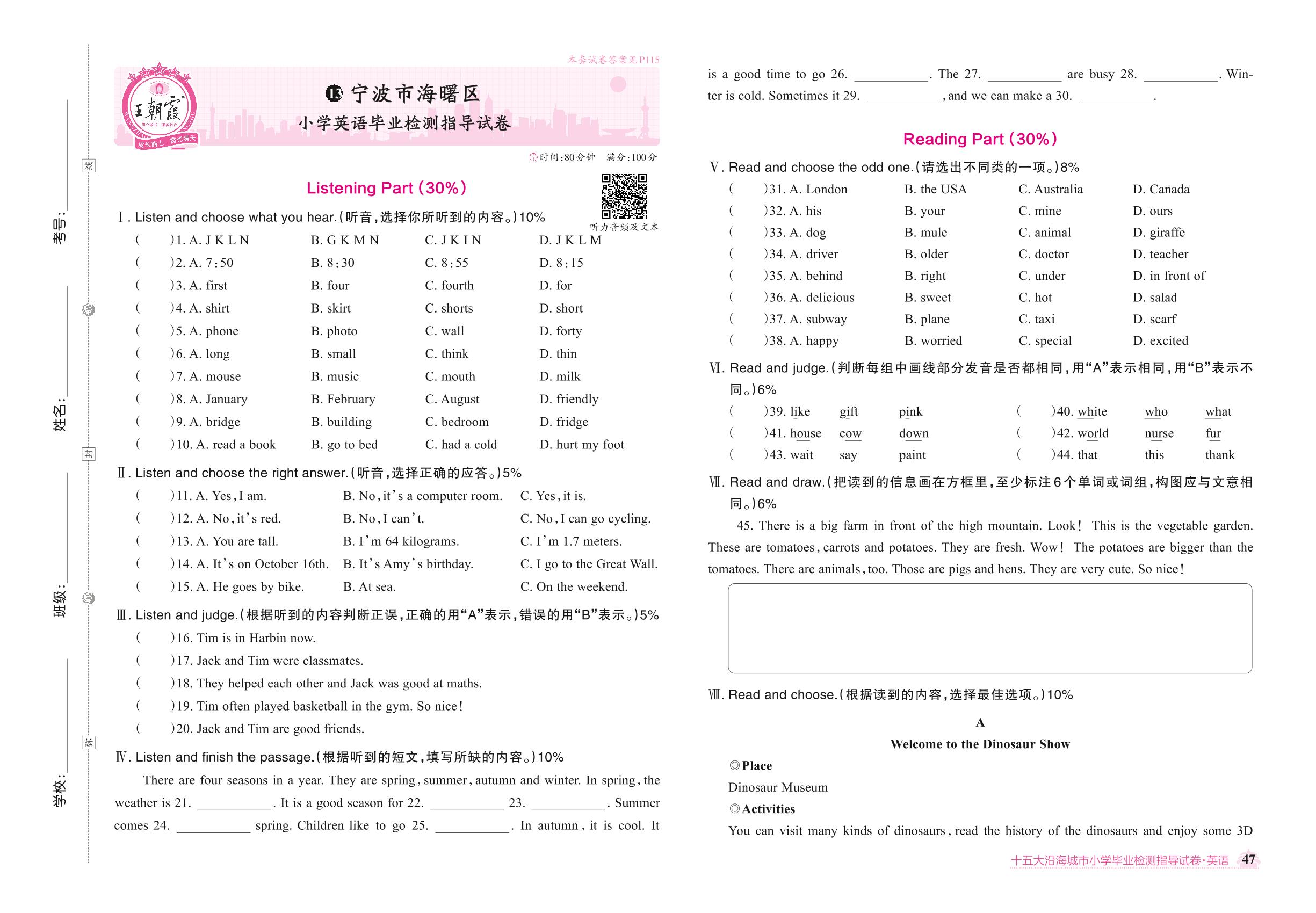 宁波市海曙区小学英语毕业检测指导试卷【13】