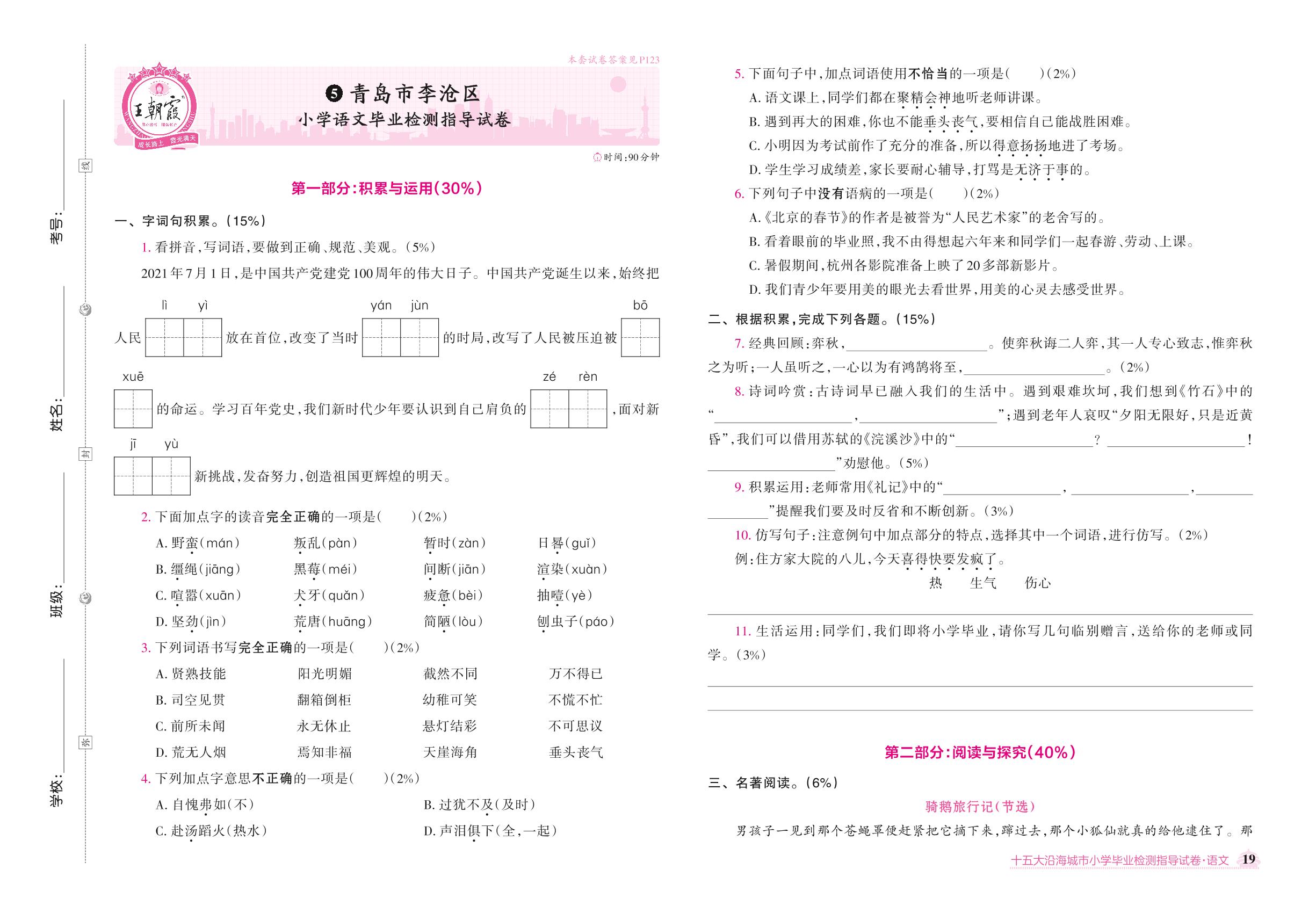 青岛市李沧区小学语文毕业检测指导试卷【5】