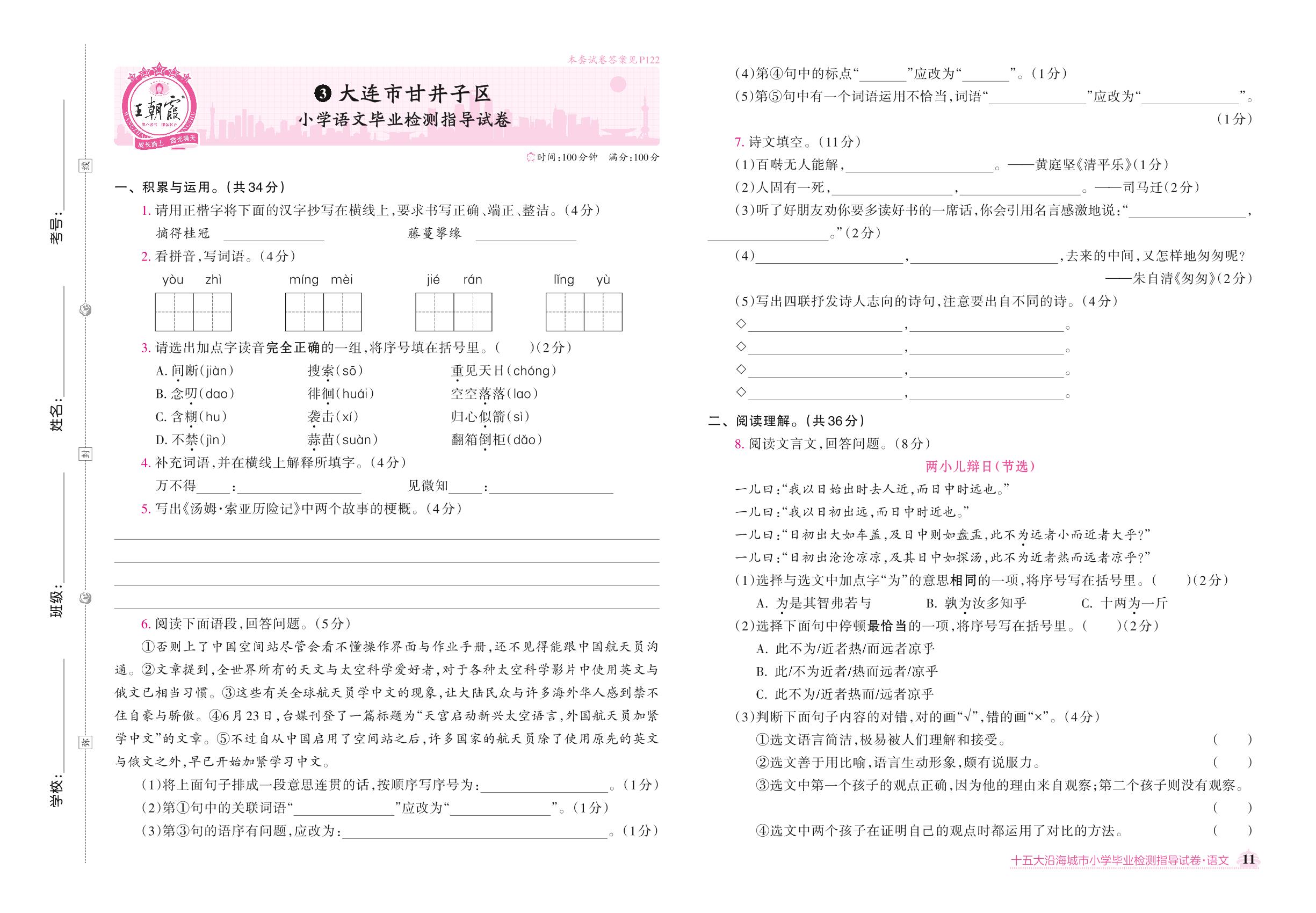 大连市甘井子区小学语文毕业检测指导试卷【3】