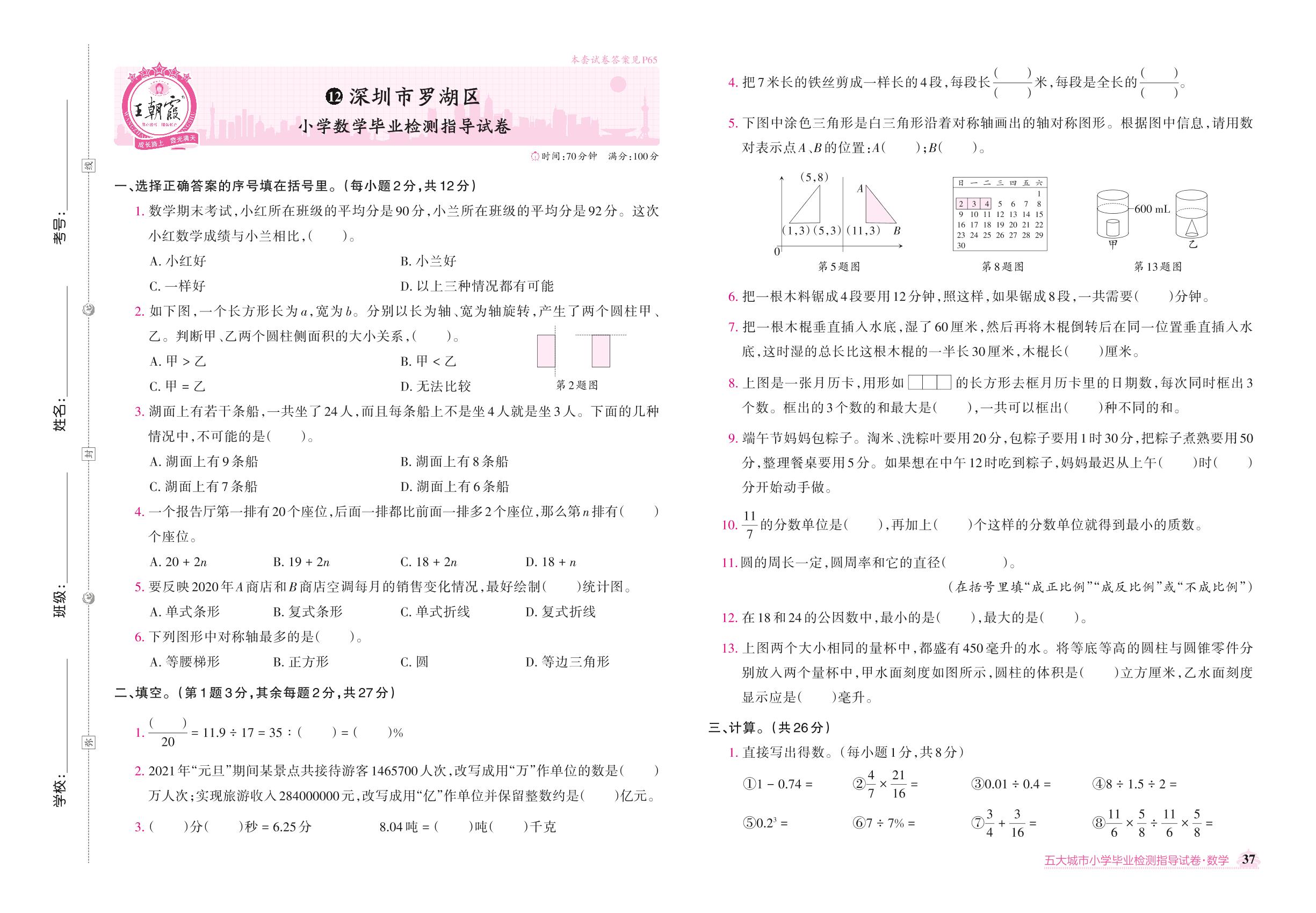 深圳市罗湖区小学数学毕业检测指导试卷【12】