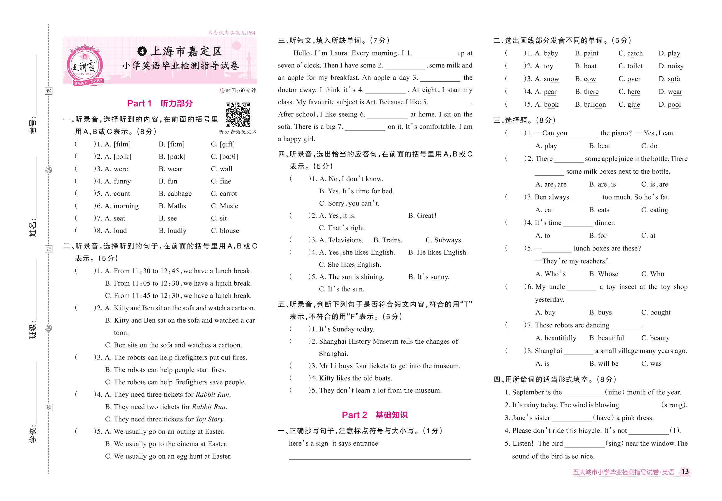 上海市嘉定区小学英语毕业检测指导试卷【4】