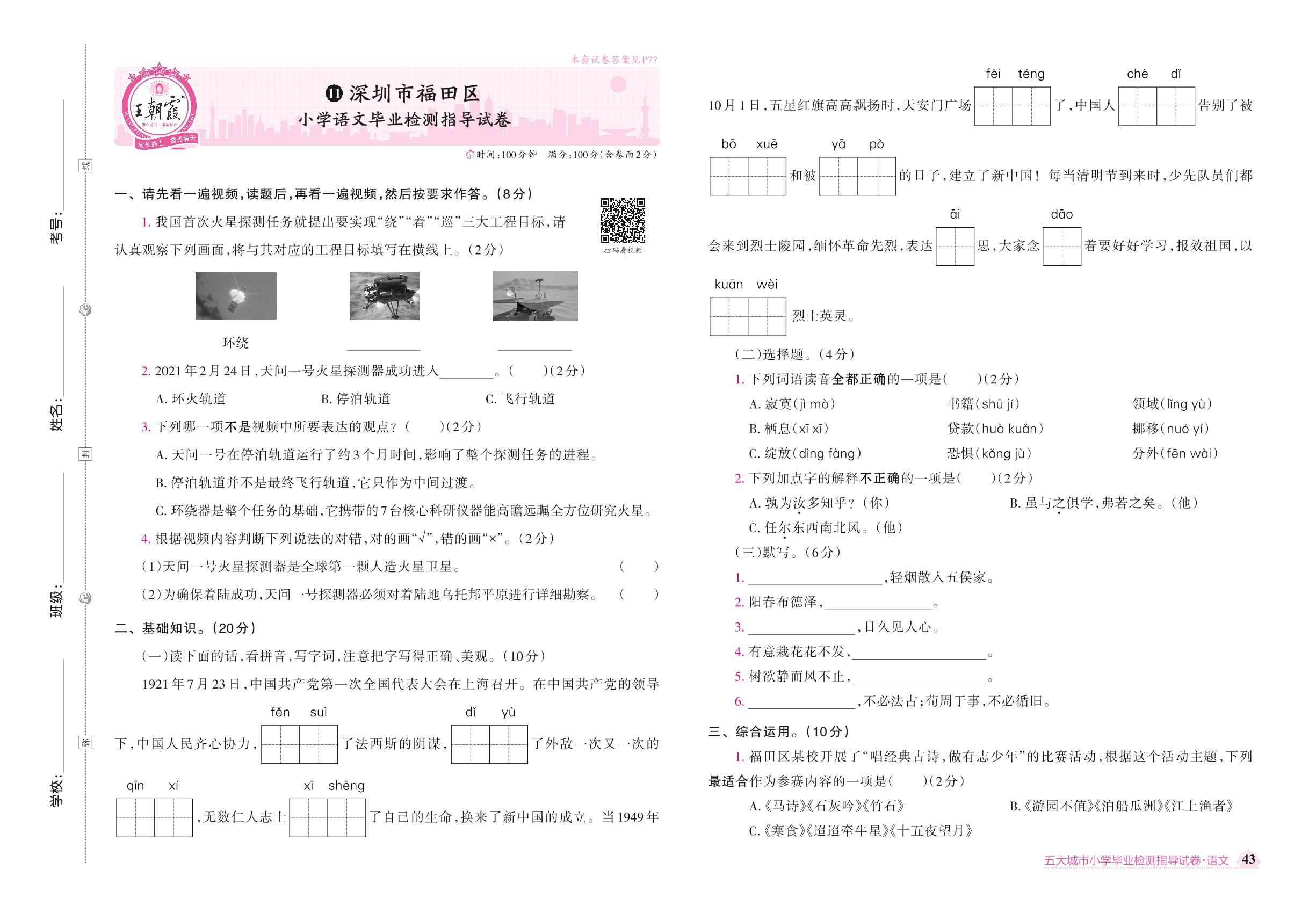深圳市福田区小学语文毕业检测指导试卷【11】