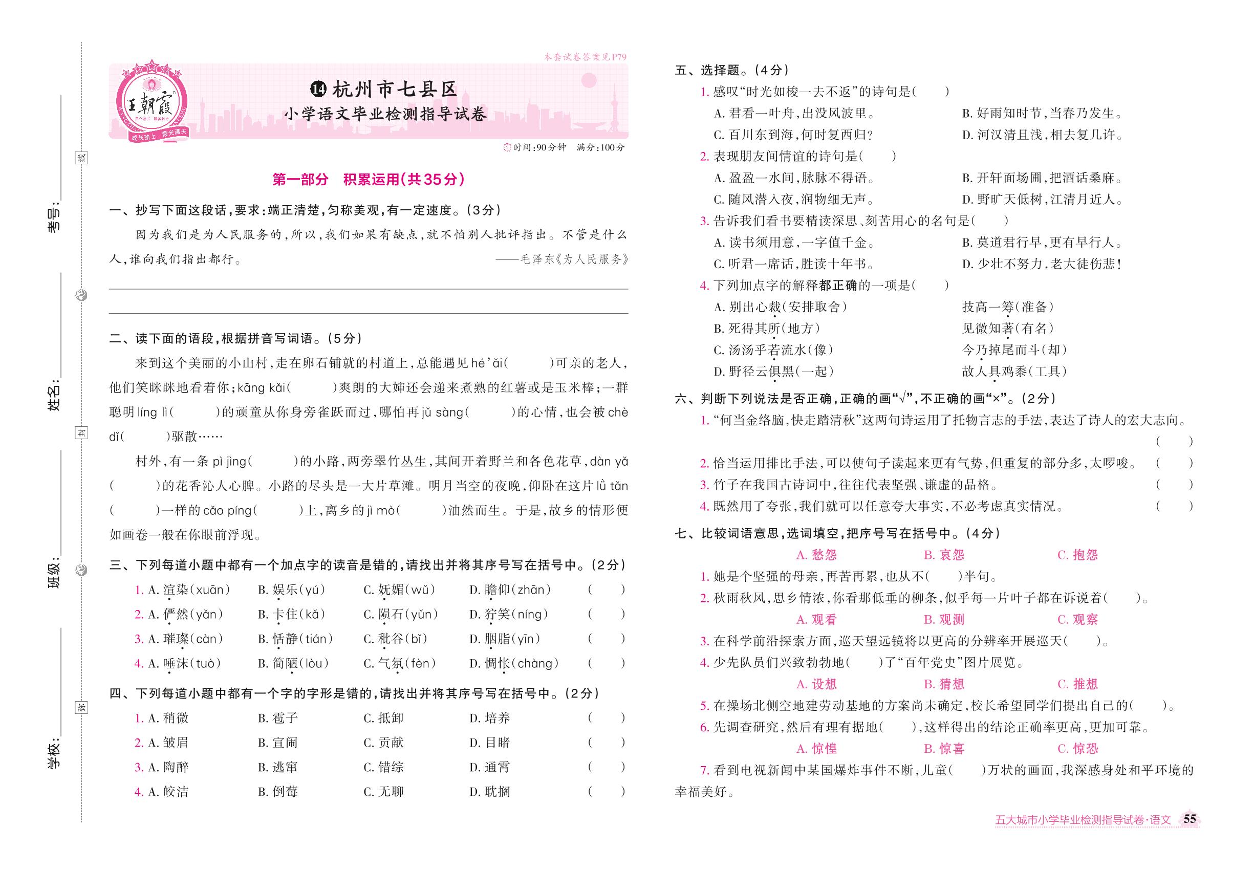 杭州市七县区小学语文毕业检测指导试卷【14】
