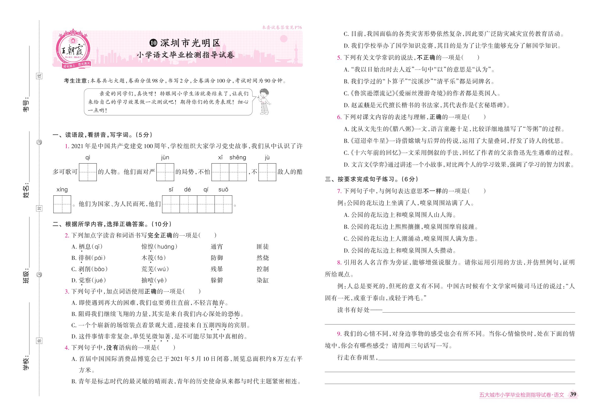 深圳市光明区小学语文毕业检测指导试卷【10】