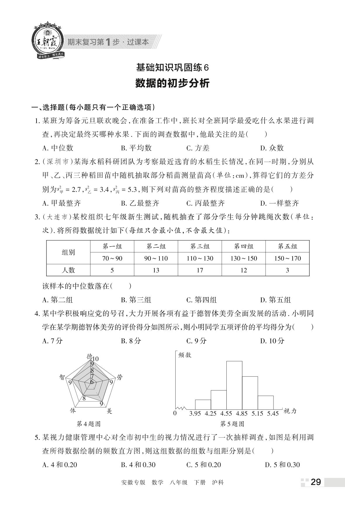 王朝霞期末过课本——基础知识巩固练6 数据的初步分析八年级下册数学(沪科版)