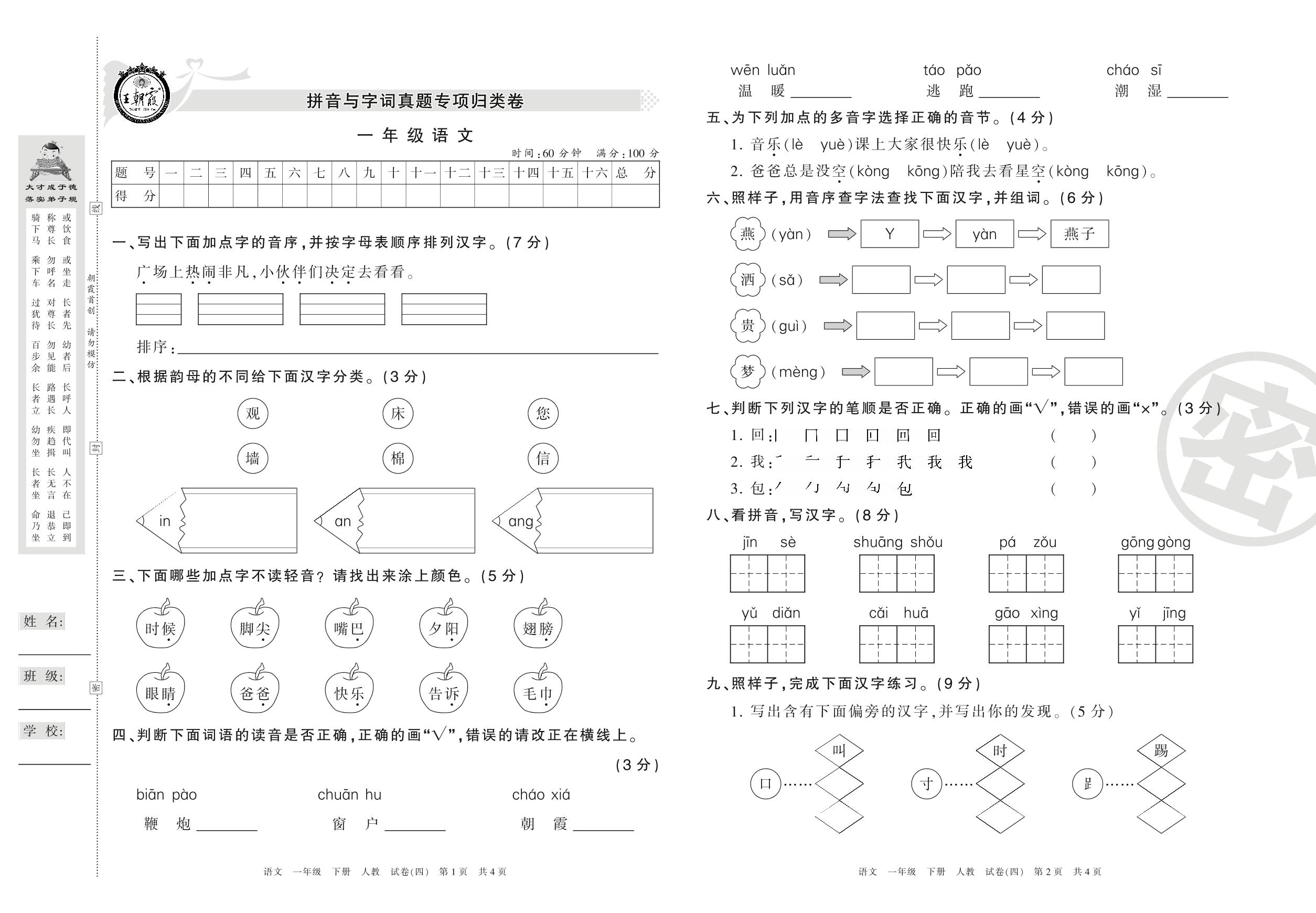 王朝霞期末专项卷一年级下册语文(人教版)_R210731183150【4】