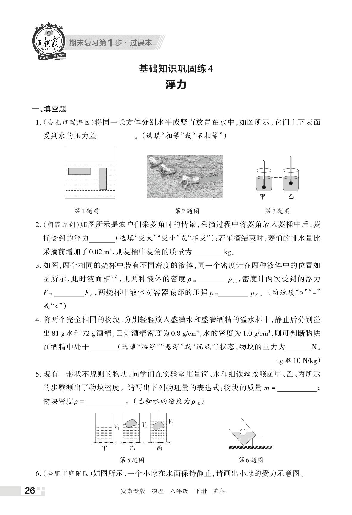 王朝霞期末过课本——基础知识巩固练4 浮力八年级下册物理(沪科版)