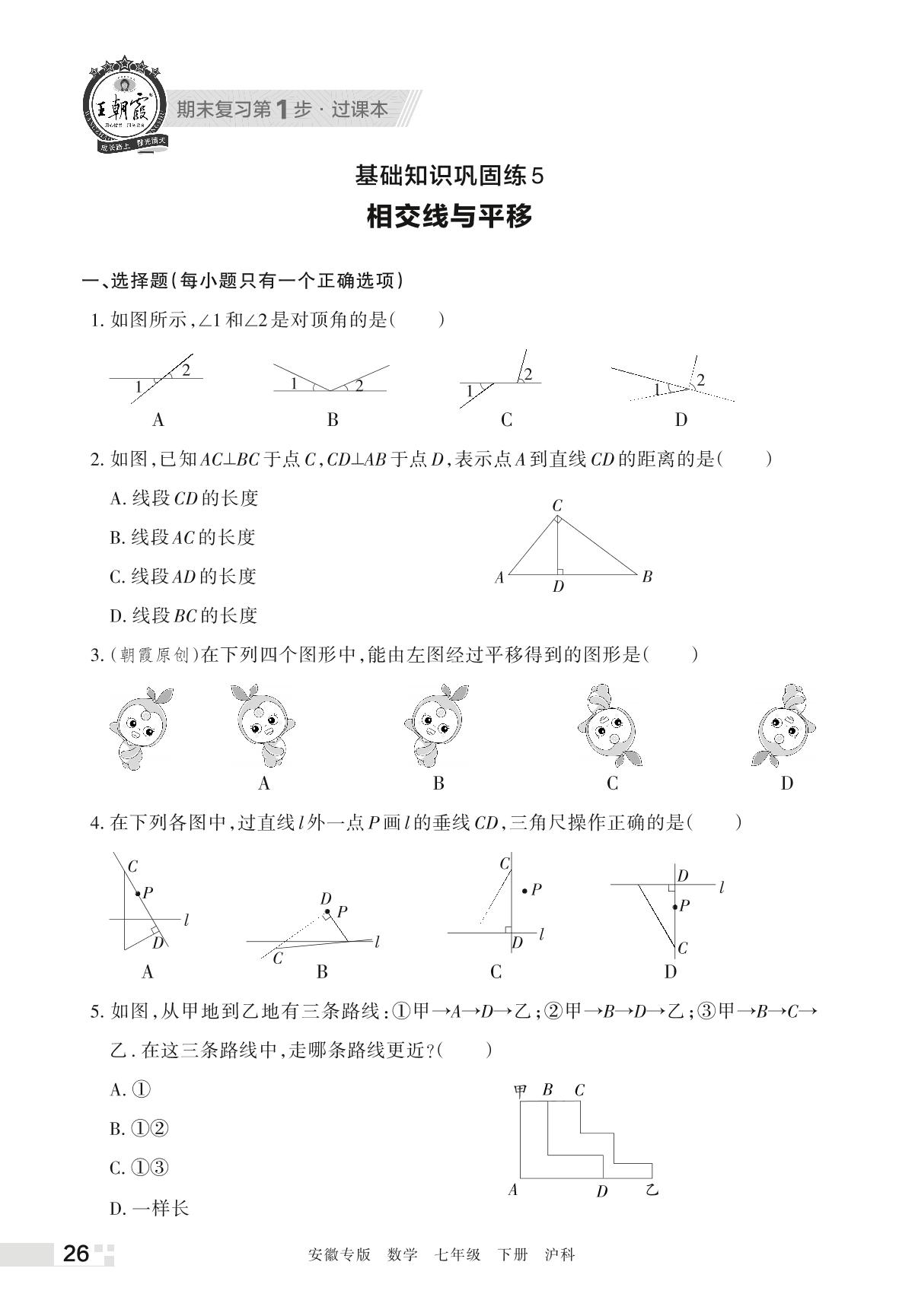 王朝霞期末过课本——基础知识巩固练5 相交线与平移七年级下册数学(沪科版)