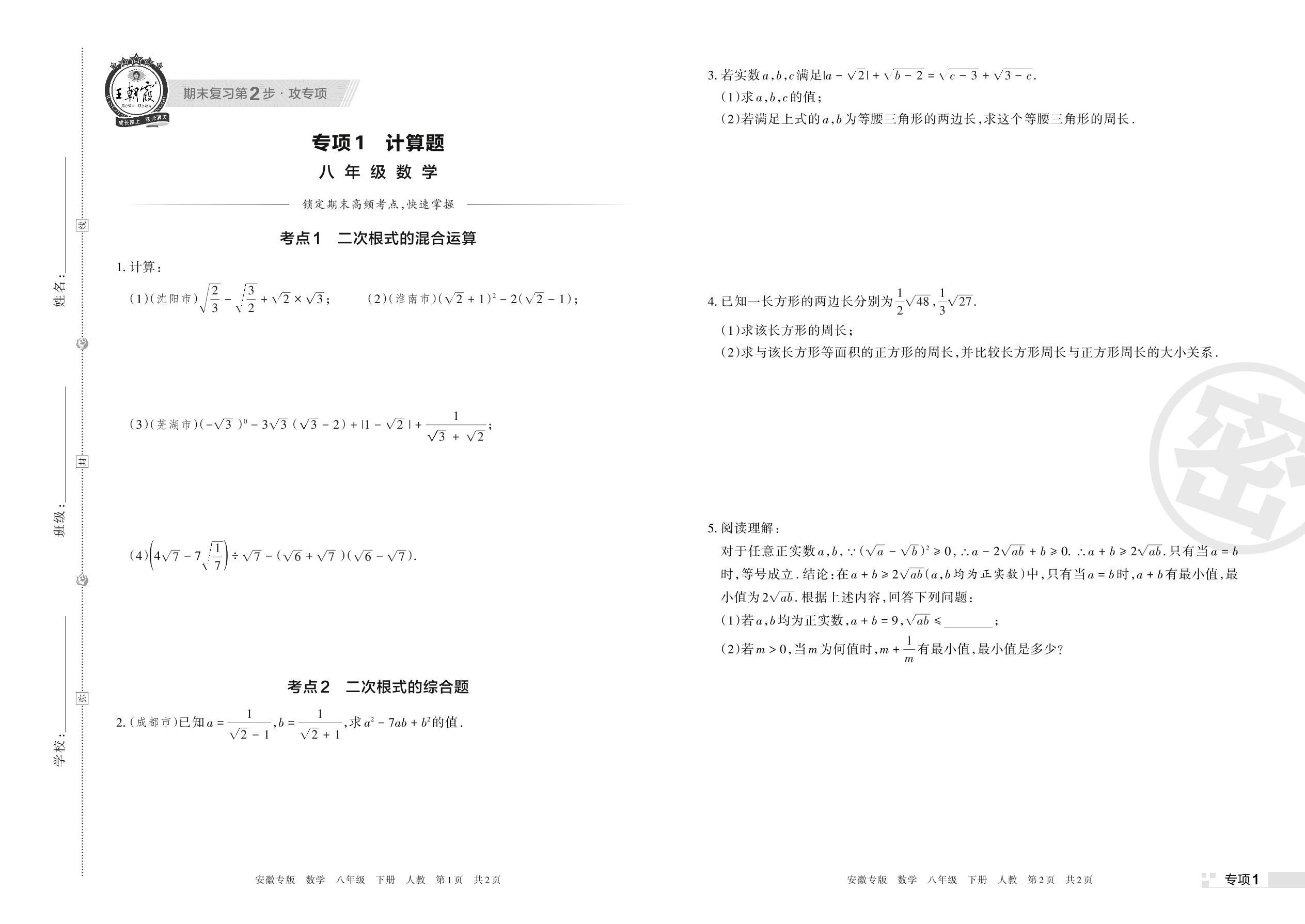 王朝霞期末专项卷——计算题八年级下册数学(人教版)【1】