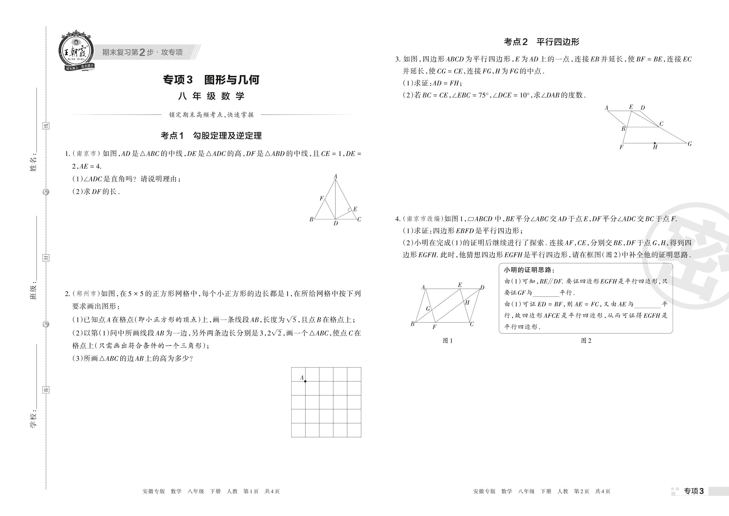 王朝霞期末专项卷——图形与几何八年级下册数学(人教版)【3】