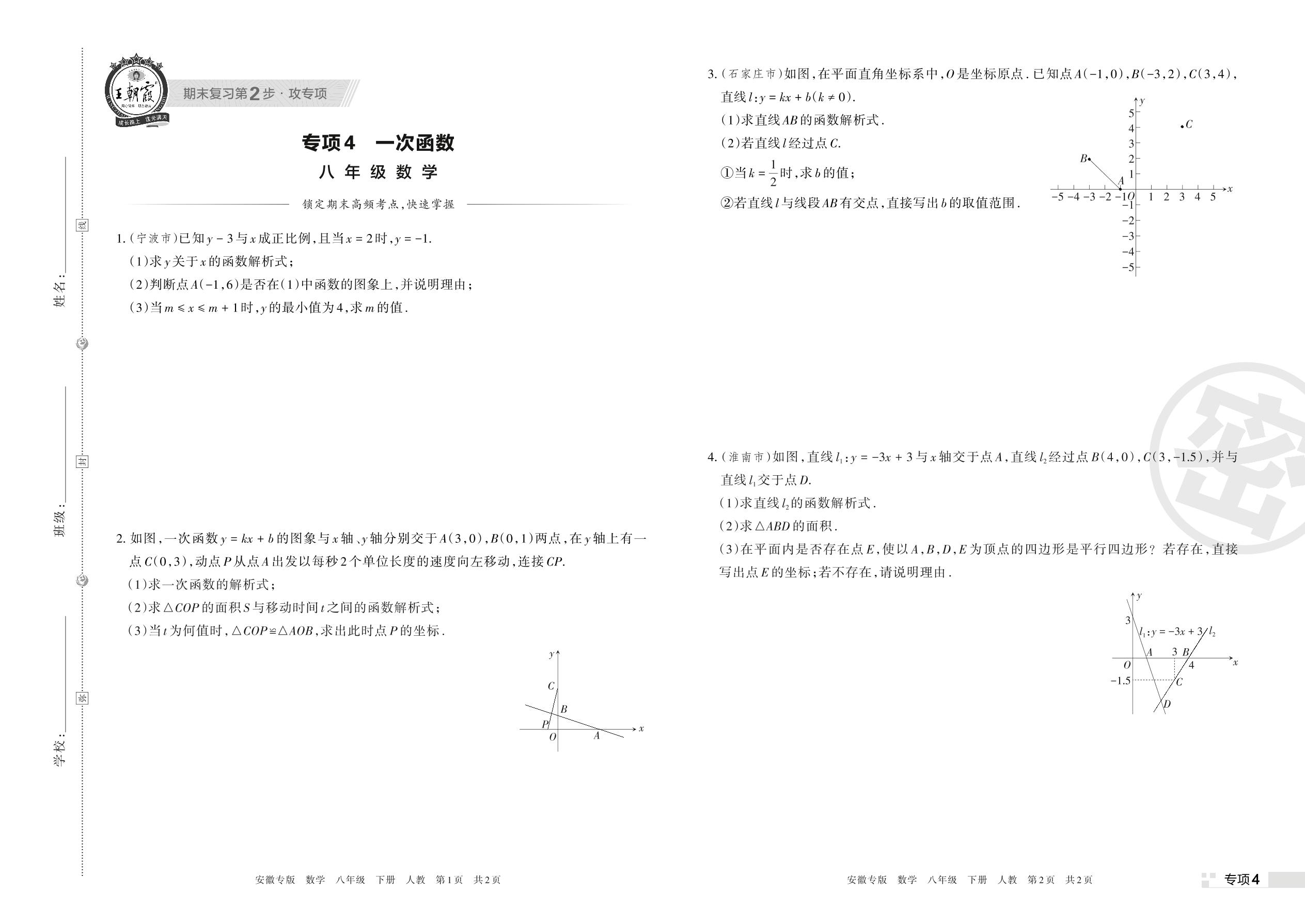 王朝霞期末专项卷——一次函数八年级下册数学(人教版)【4】