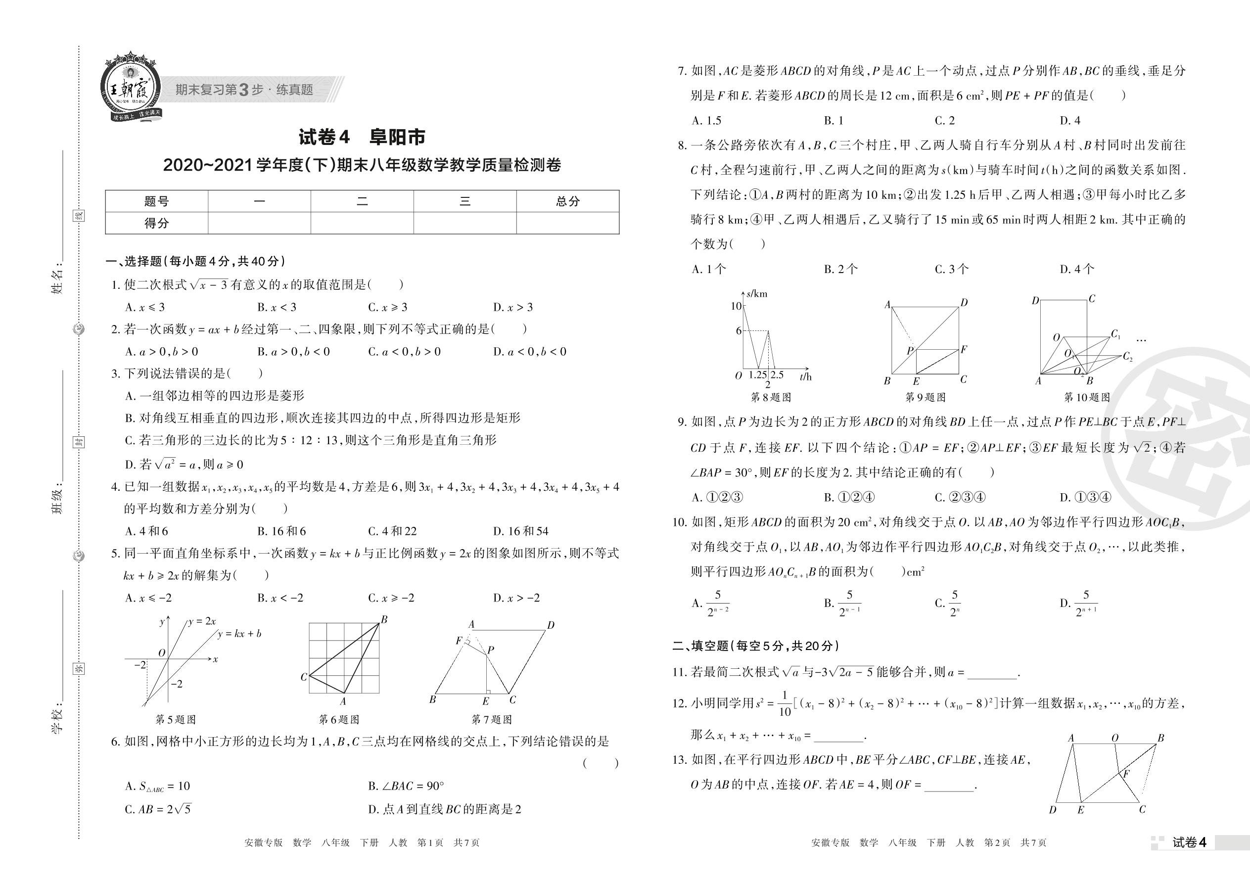 阜阳市2020~2021学年度(下)期末八年级数学教学质量检测卷(人教版)【4】