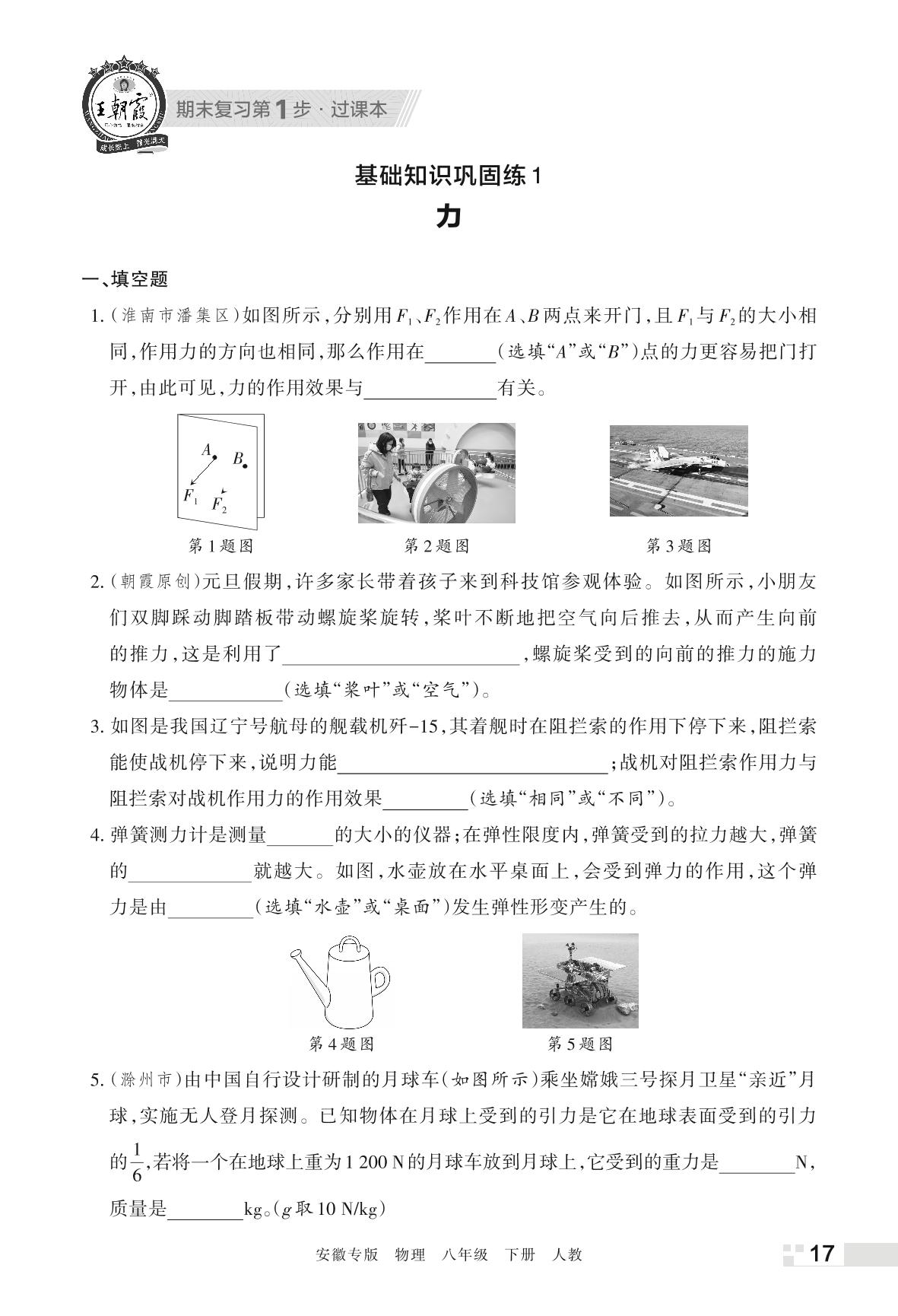 王朝霞期末过课本——基础知识巩固练1 力八年级下册物理(人教版)