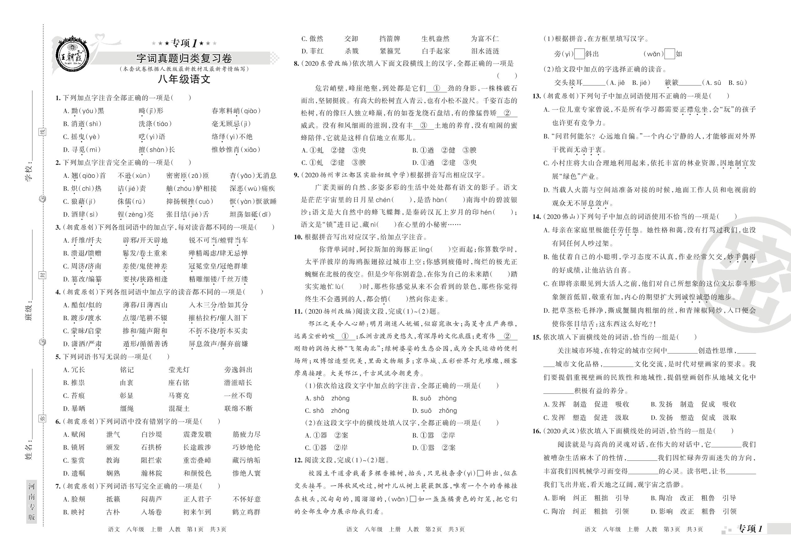 王朝霞期末专项卷——字词、句子真题归类复习八年级上册语文(人教版)【0】