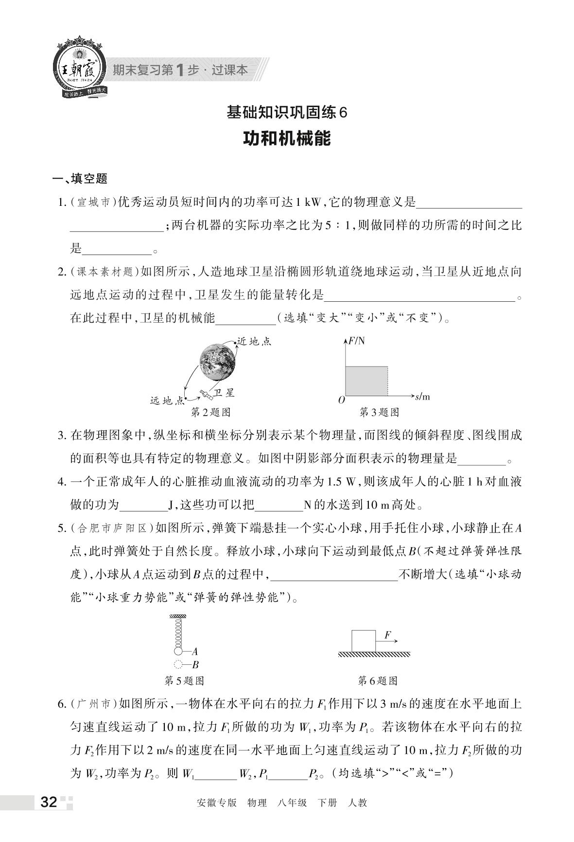 王朝霞期末过课本——基础知识巩固练6 功和机械能八年级下册物理(人教版)