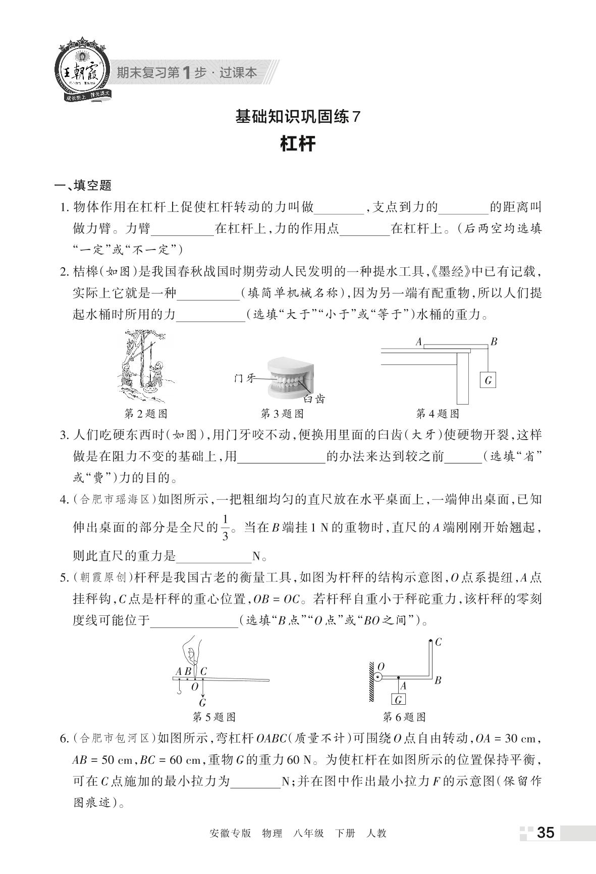 王朝霞期末过课本——基础知识巩固练7 杠杆八年级下册物理(人教版)