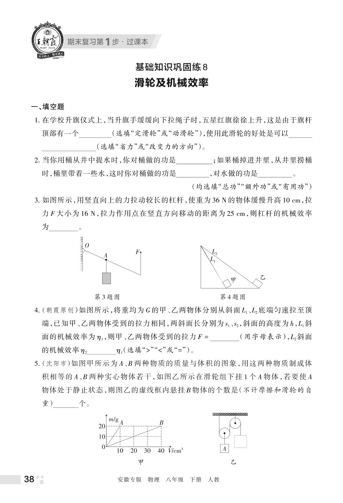 王朝霞期末过课本——基础知识巩固练8 滑轮及机械效率八年级下册物理(人教版)