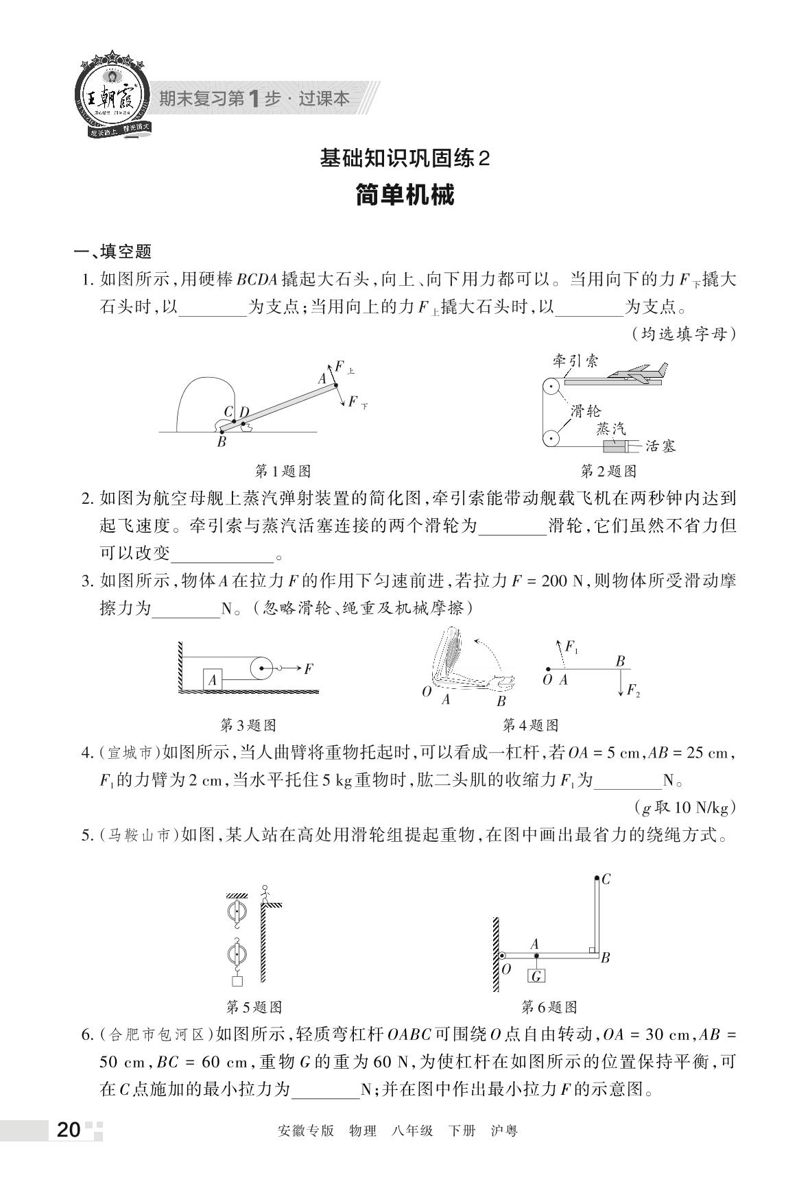 王朝霞期末过课本——基础知识巩固练2 简单机械八年级下册物理(沪粤版)