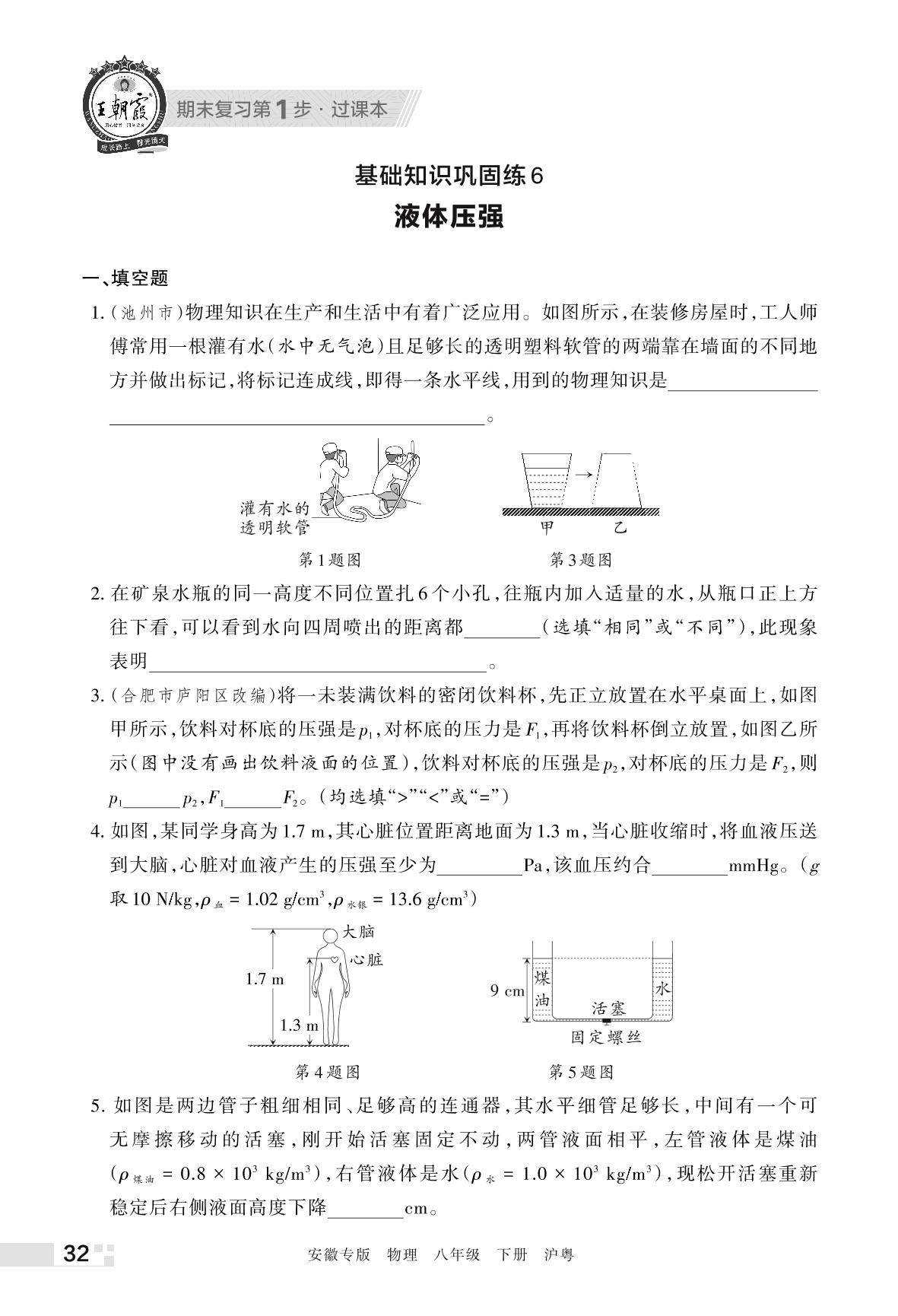 王朝霞期末过课本——基础知识巩固练6 液体压强八年级下册物理(沪粤版)