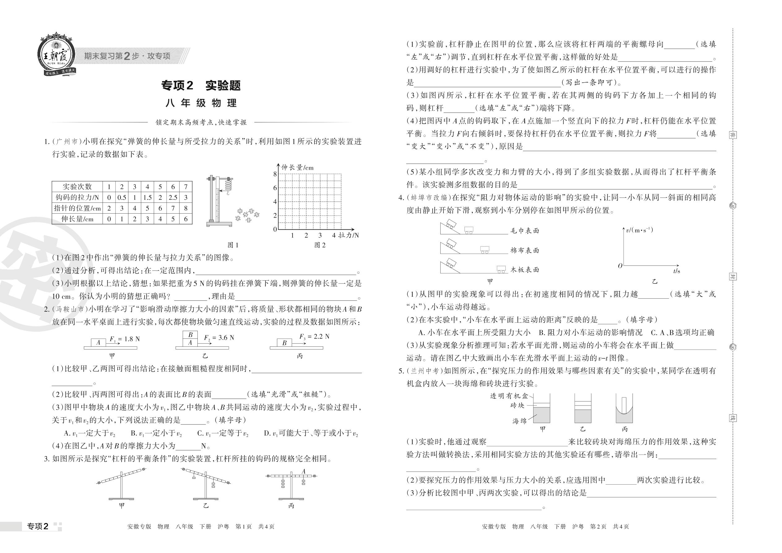 王朝霞期末专项卷——实验题八年级下册物理(沪粤版)【2】