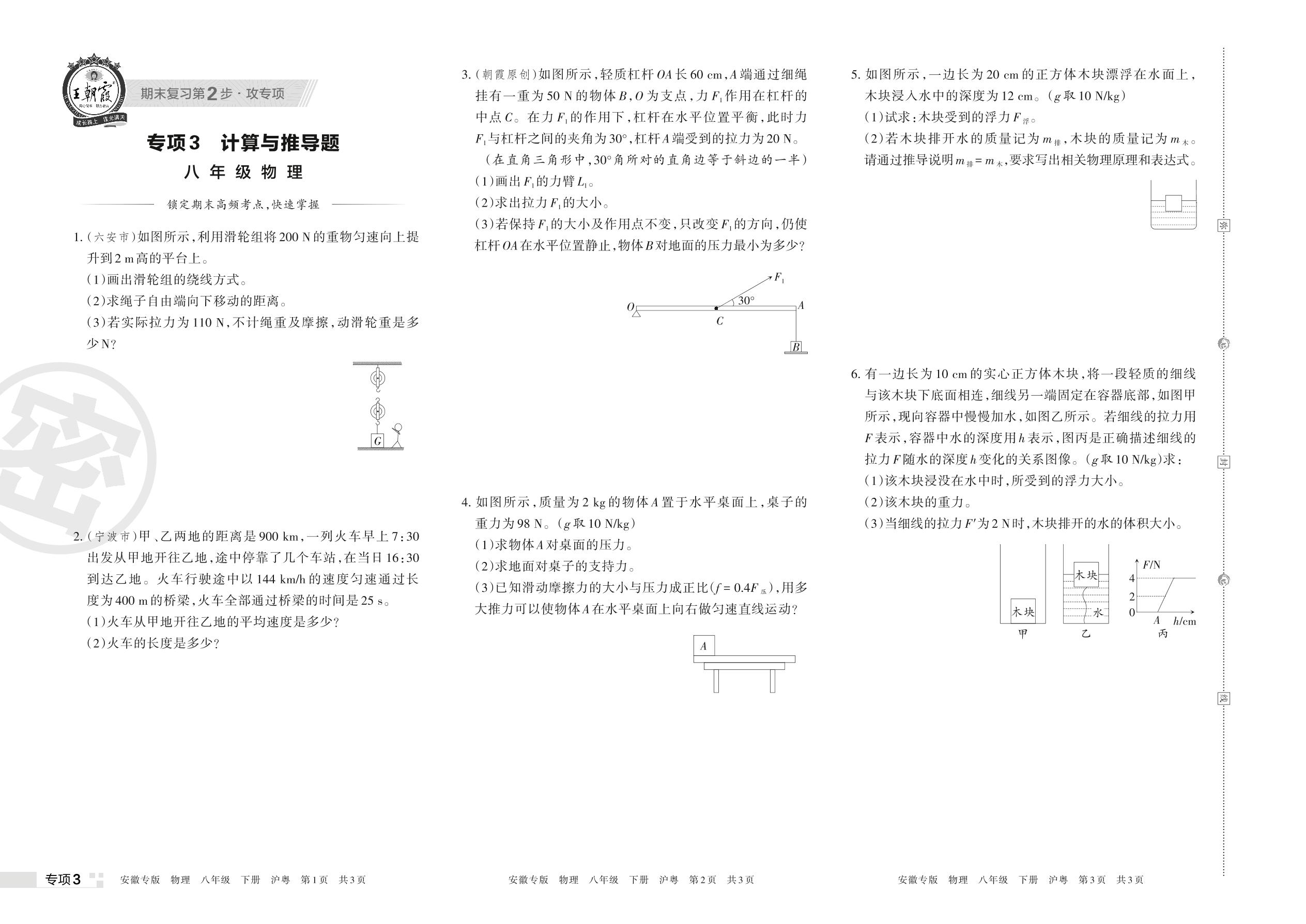 王朝霞期末专项卷——计算与推导题八年级下册物理(沪粤版)【3】