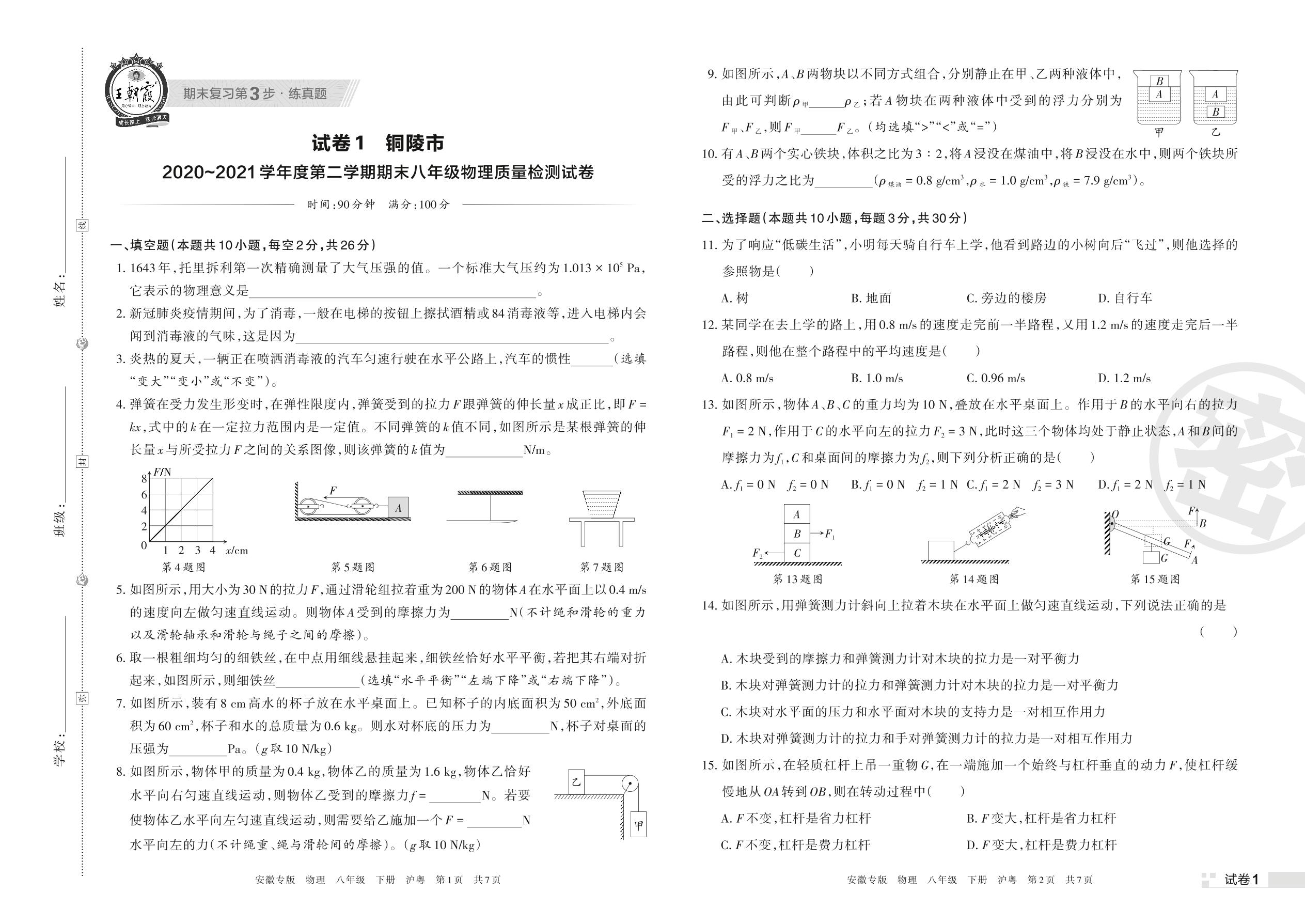 铜陵市2020~2021学年度第二学期期末八年级物理质量检测试卷(沪粤版)【1】