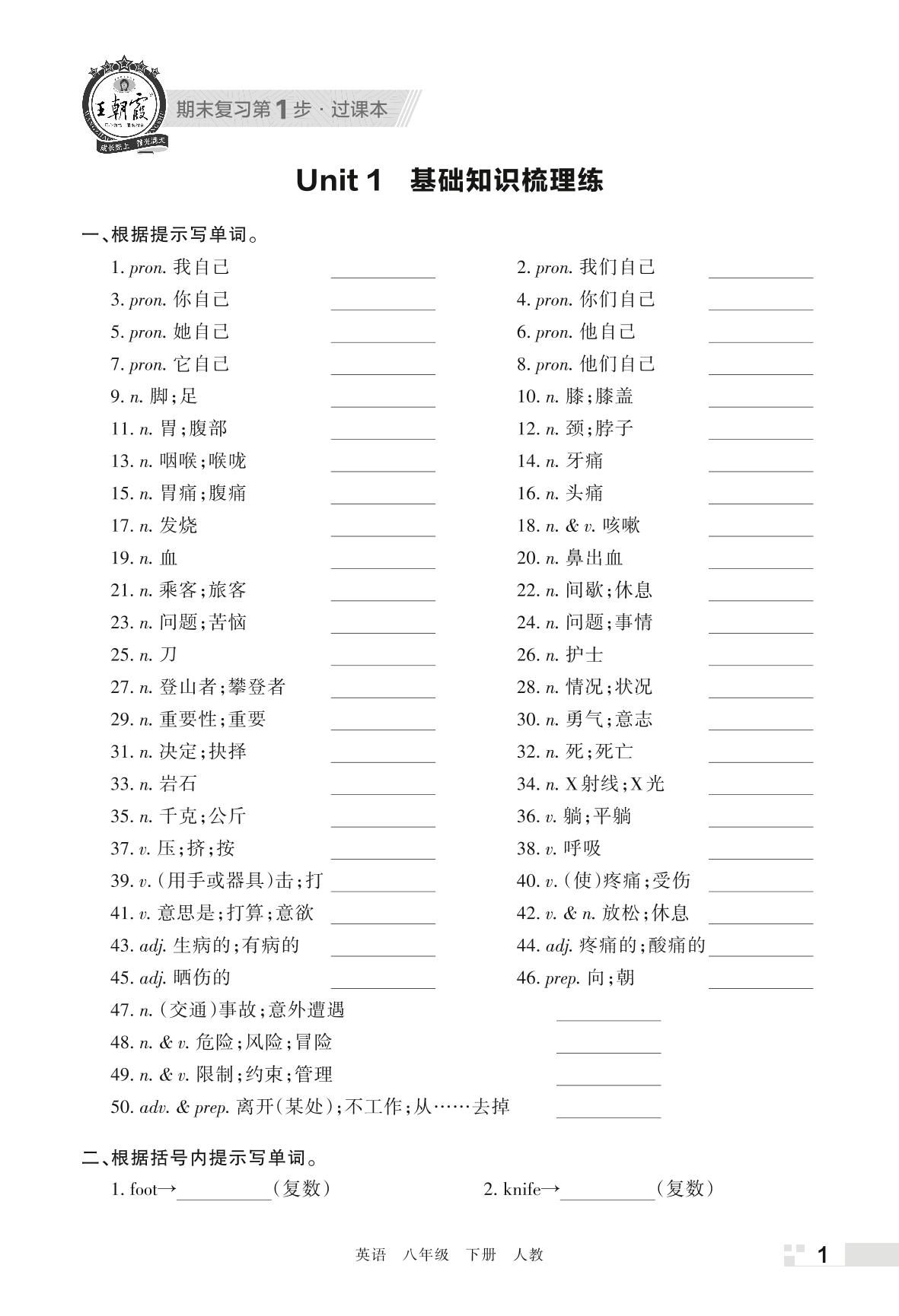 王朝霞期末过课本——Unit 1 基础知识梳理练八年级下册英语(人教版)