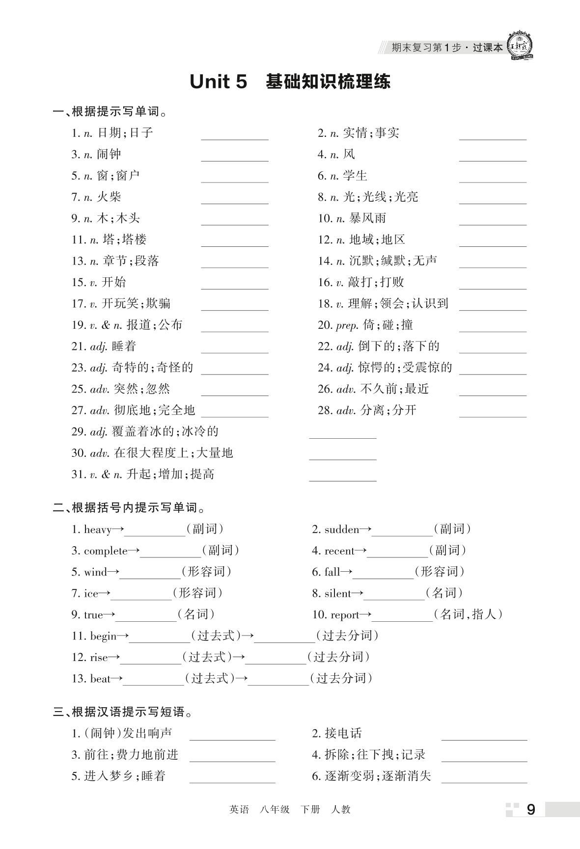 王朝霞期末过课本——Unit 5 基础知识梳理练八年级下册英语(人教版)