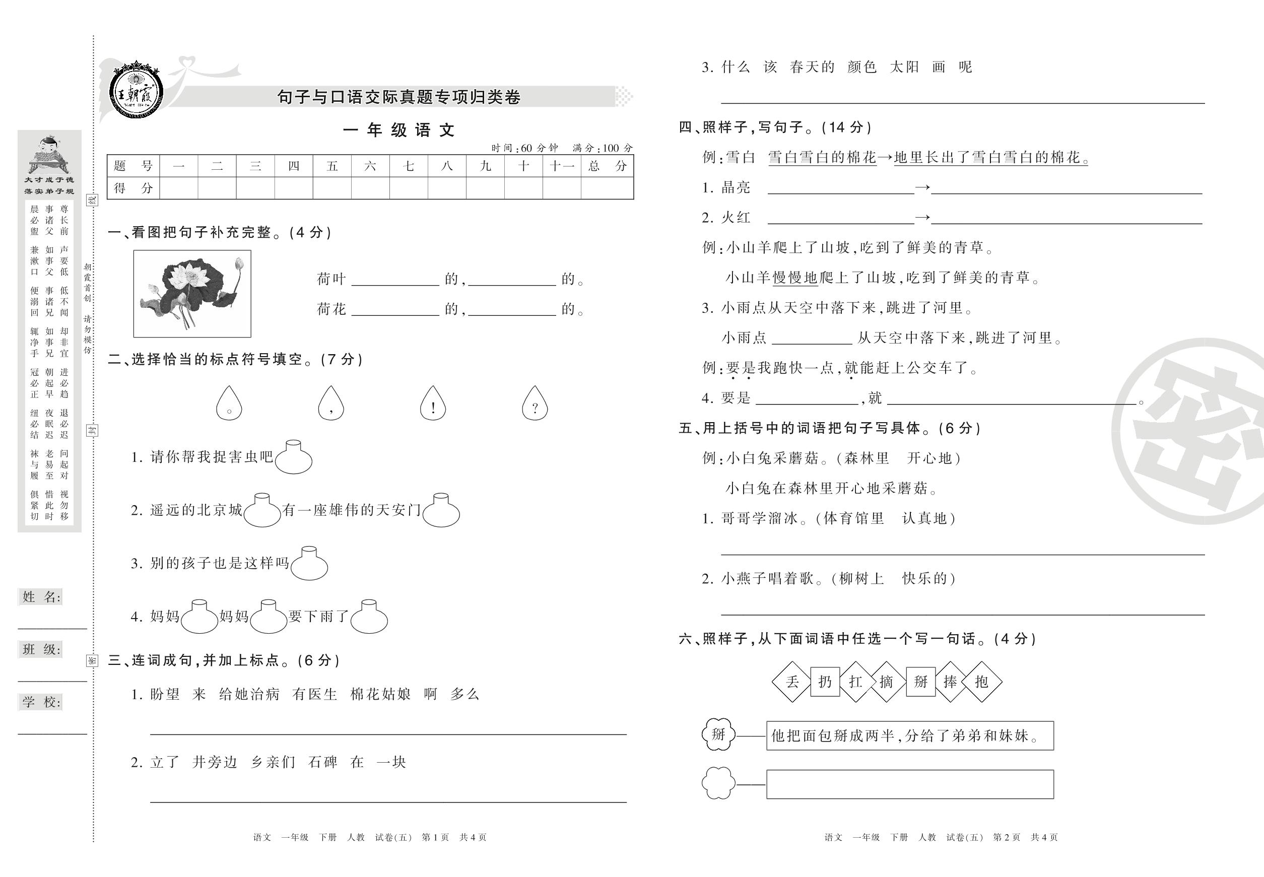 王朝霞期末专项卷一年级下册语文(人教版)_R210731183201【5】