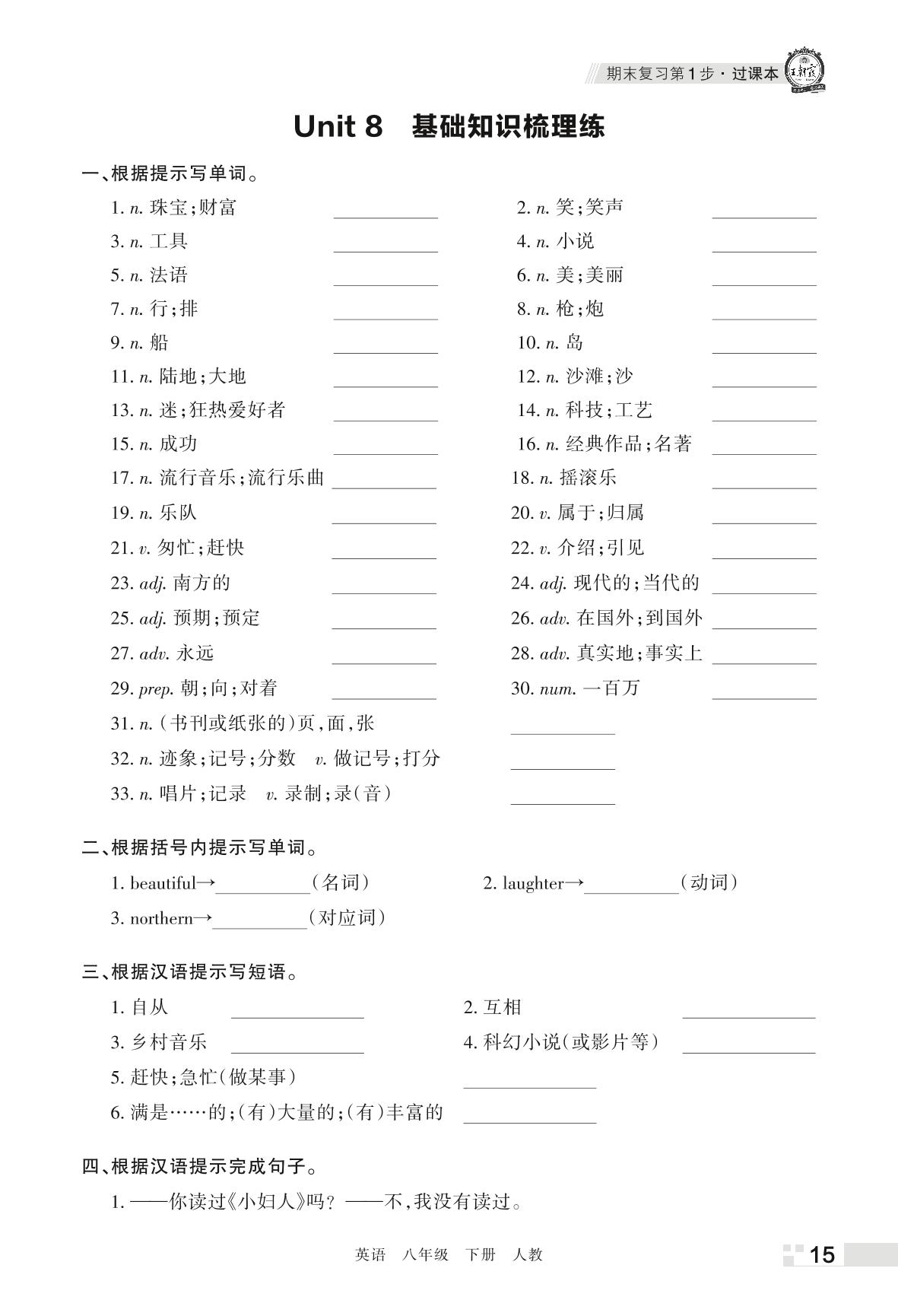 王朝霞期末过课本——Unit 8 基础知识梳理练八年级下册英语(人教版)