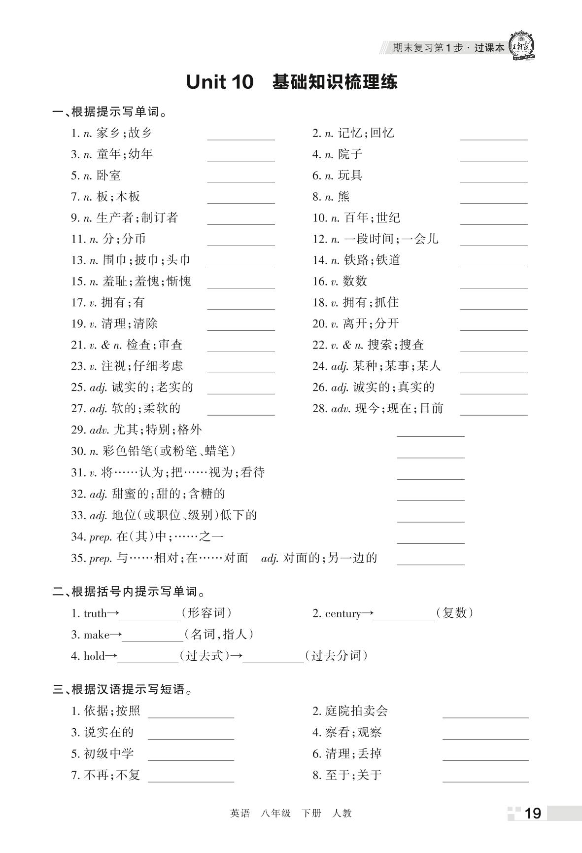 王朝霞期末过课本——Unit 10 基础知识梳理练八年级下册英语(人教版)