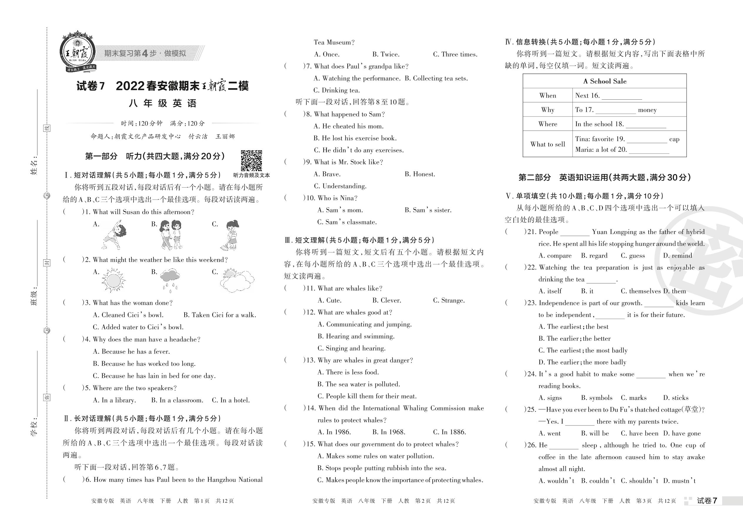 王朝霞期末模拟卷八年级下册英语(人教版)【7】