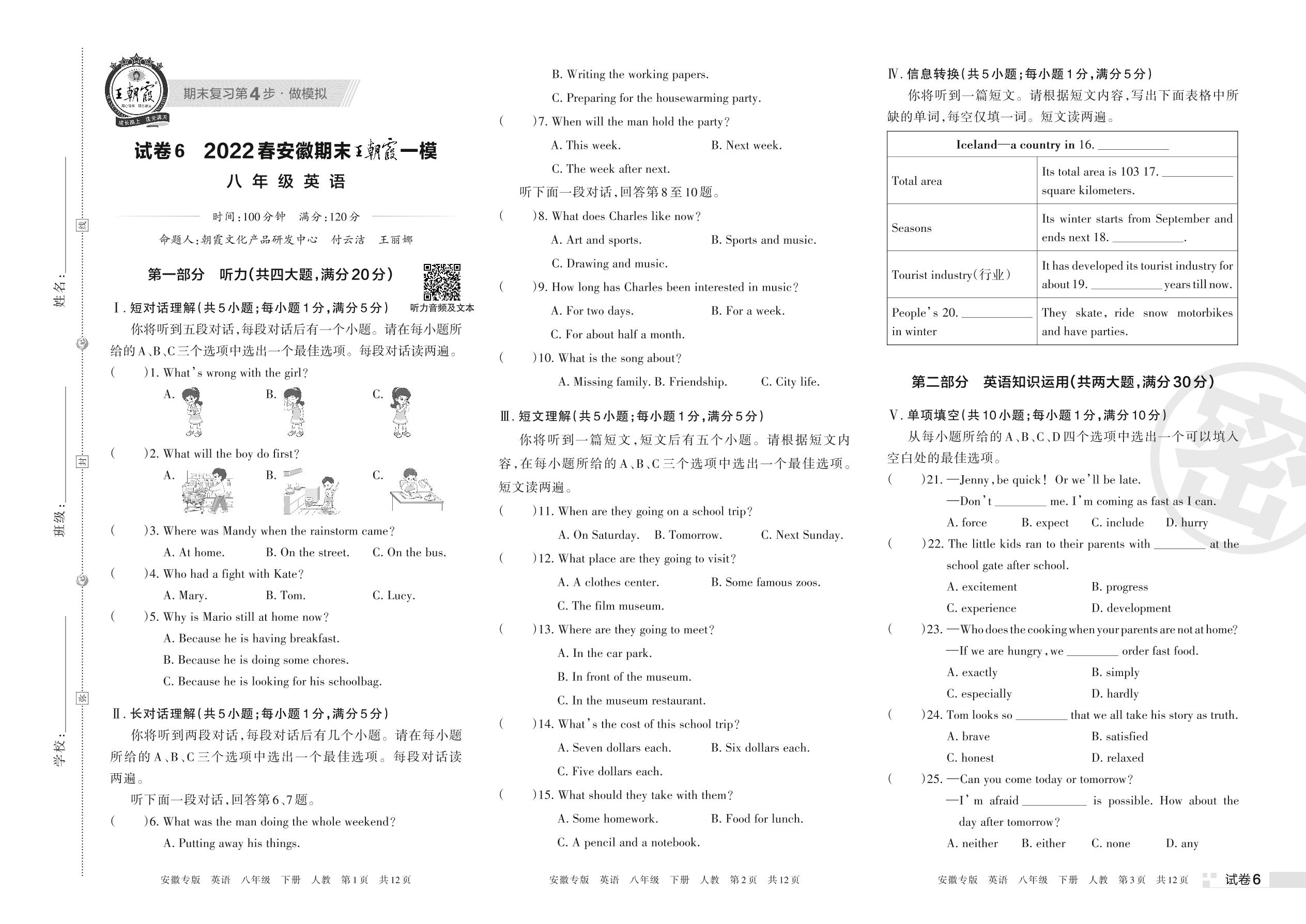 王朝霞期末模拟卷八年级下册英语(人教版)【6】