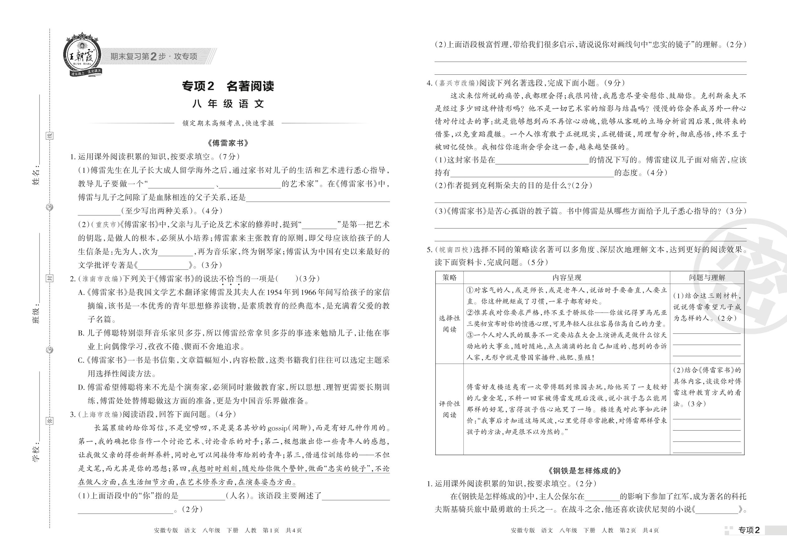 王朝霞期末专项卷——名著阅读八年级下册语文(人教版)【2】