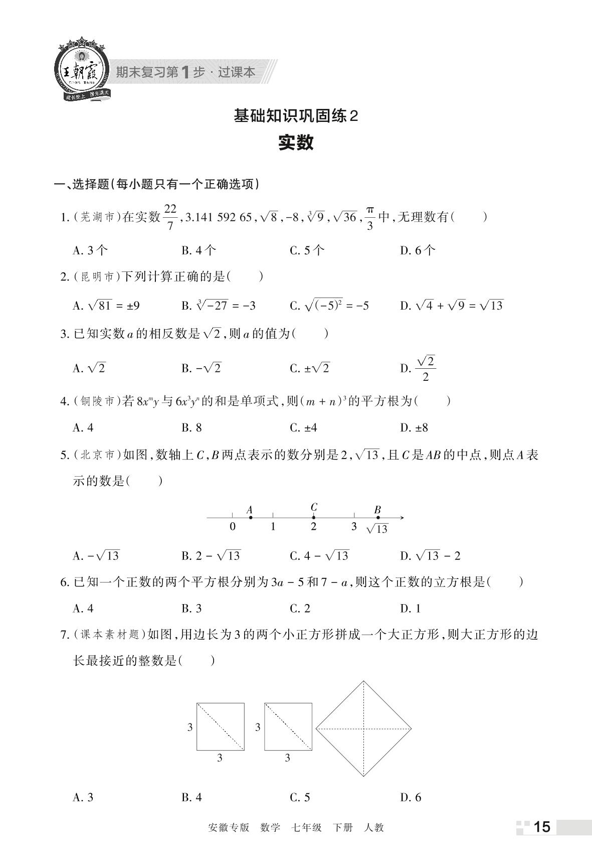 王朝霞期末过课本——基础知识巩固练2 实数七年级下册数学(人教版)