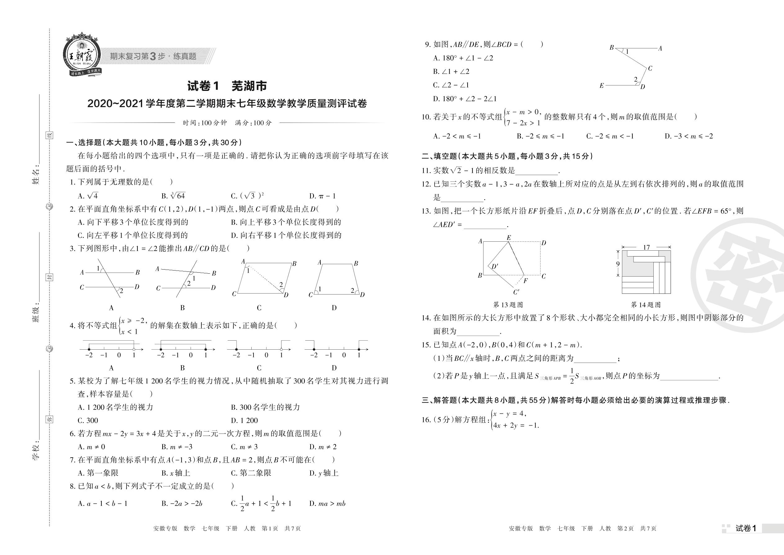 芜湖市2020~2021学年度第二学期期末七年级数学教学质量测评试卷(人教版)【1】