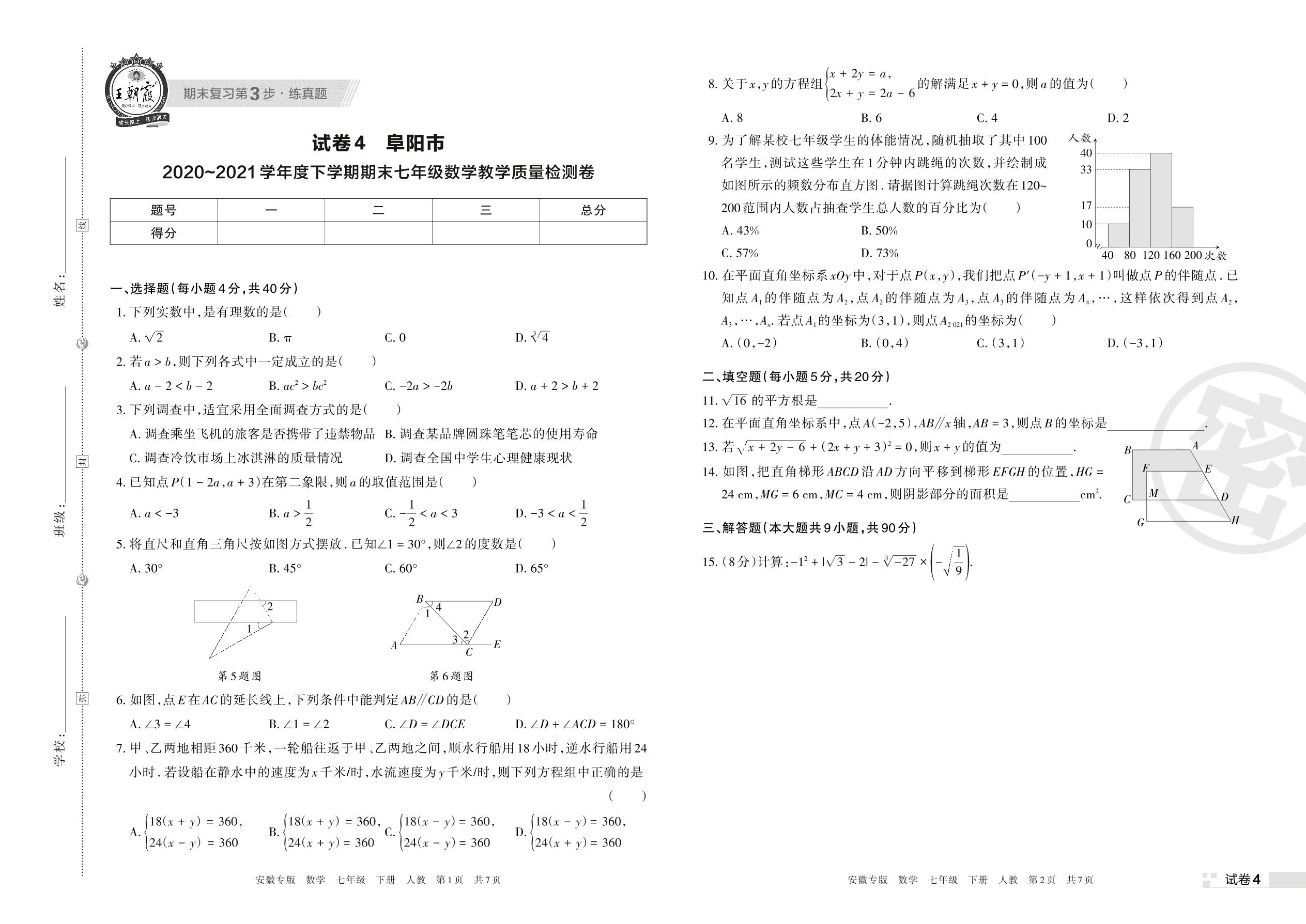 阜阳市2020~2021学年度下学期期末七年级数学教学质量检测卷(人教版)【4】