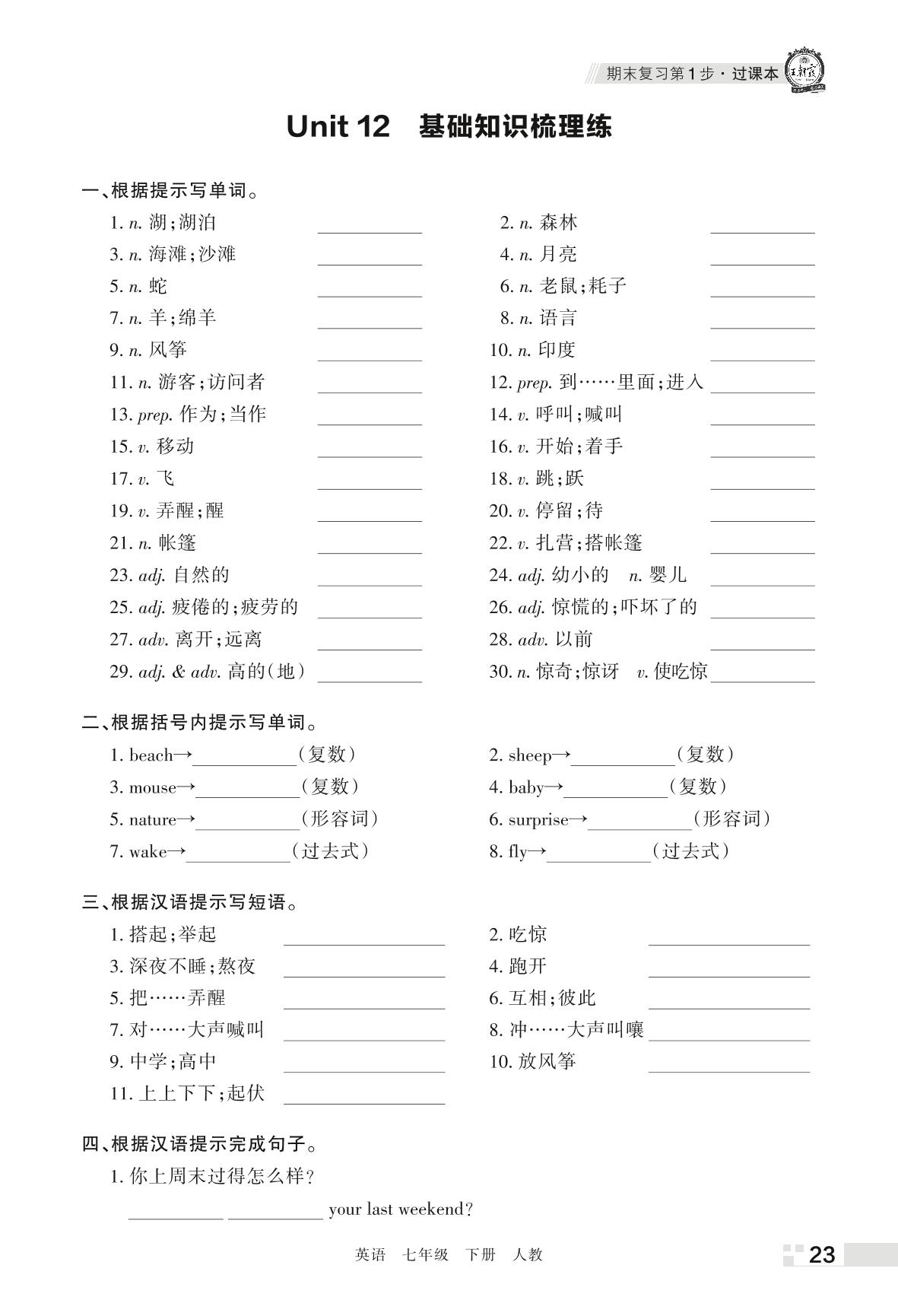 王朝霞期末过课本——Unit 12 基础知识梳理练七年级下册英语(人教版)