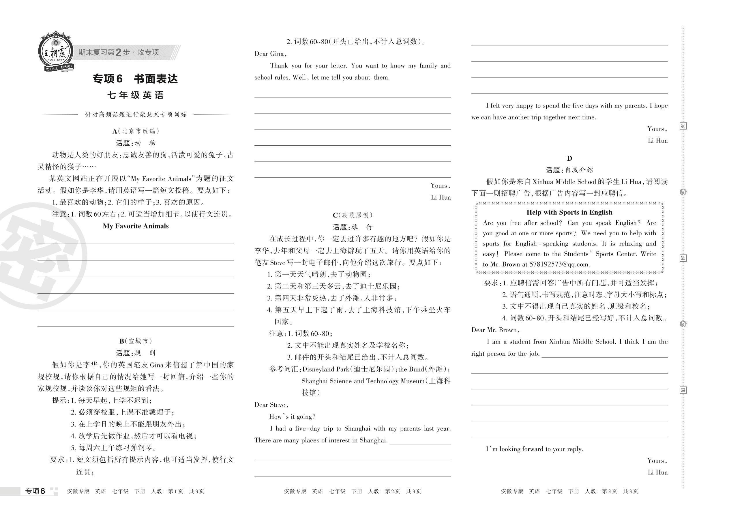 王朝霞期末专项卷——书面表达七年级下册英语(人教版)【6】