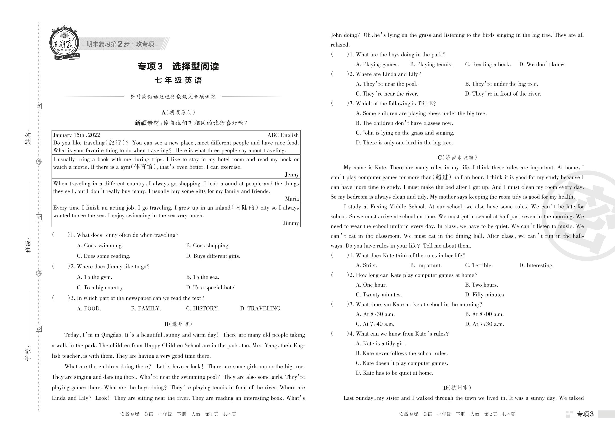 王朝霞期末专项卷——选择型阅读七年级下册英语(人教版)【3】