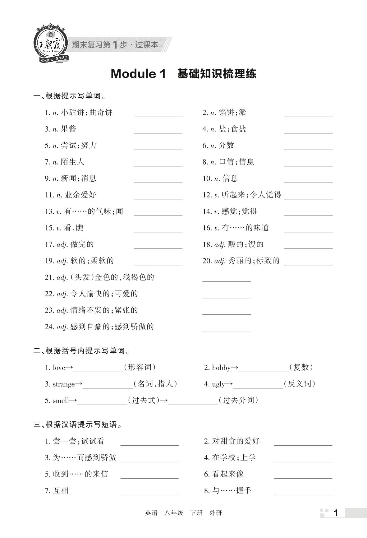 王朝霞期末过课本——Module 1 基础知识梳理练八年级下册英语(外研版)