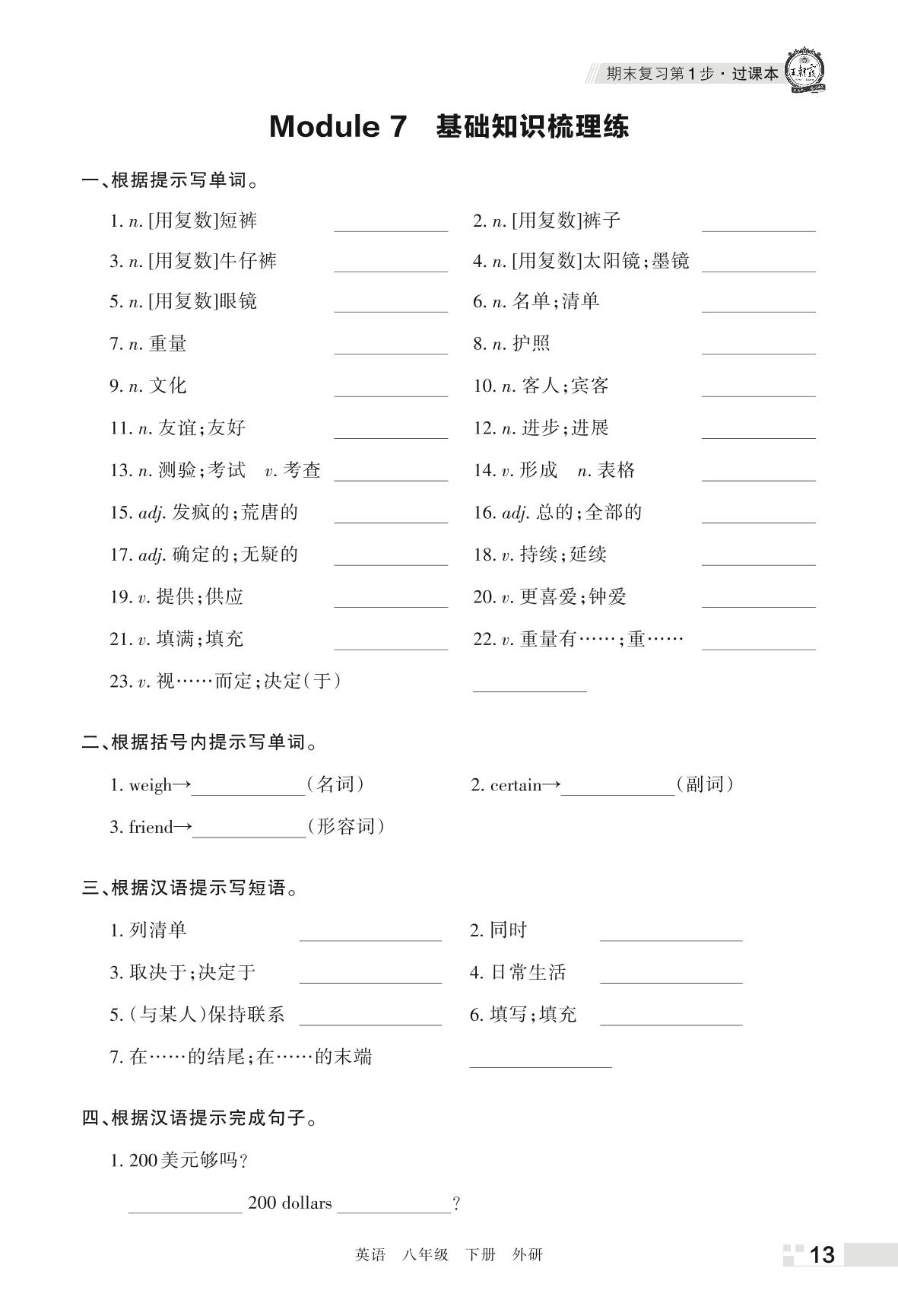 王朝霞期末过课本——Module 7 基础知识梳理练八年级下册英语(外研版)