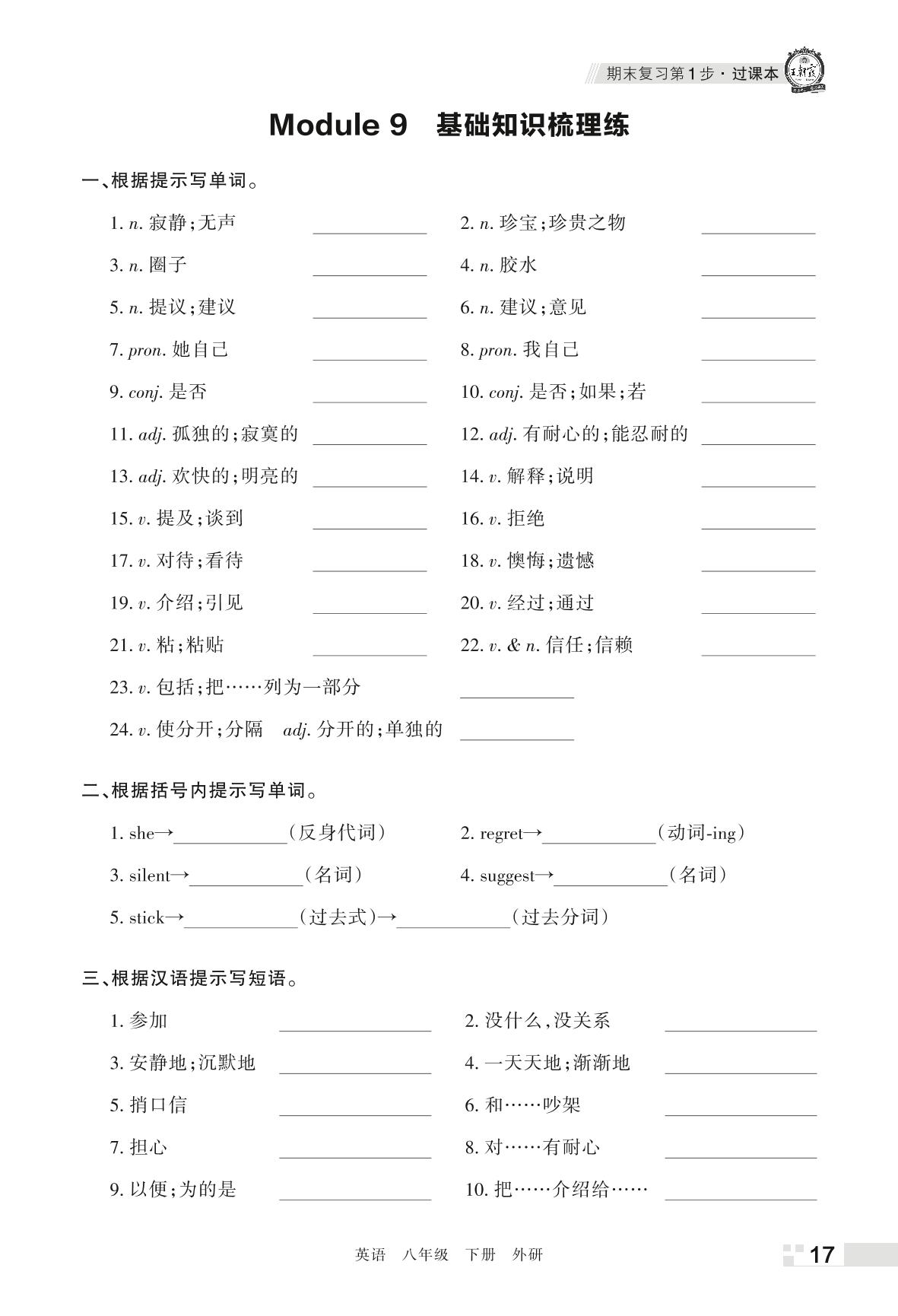 王朝霞期末过课本——Module 9 基础知识梳理练八年级下册英语(外研版)