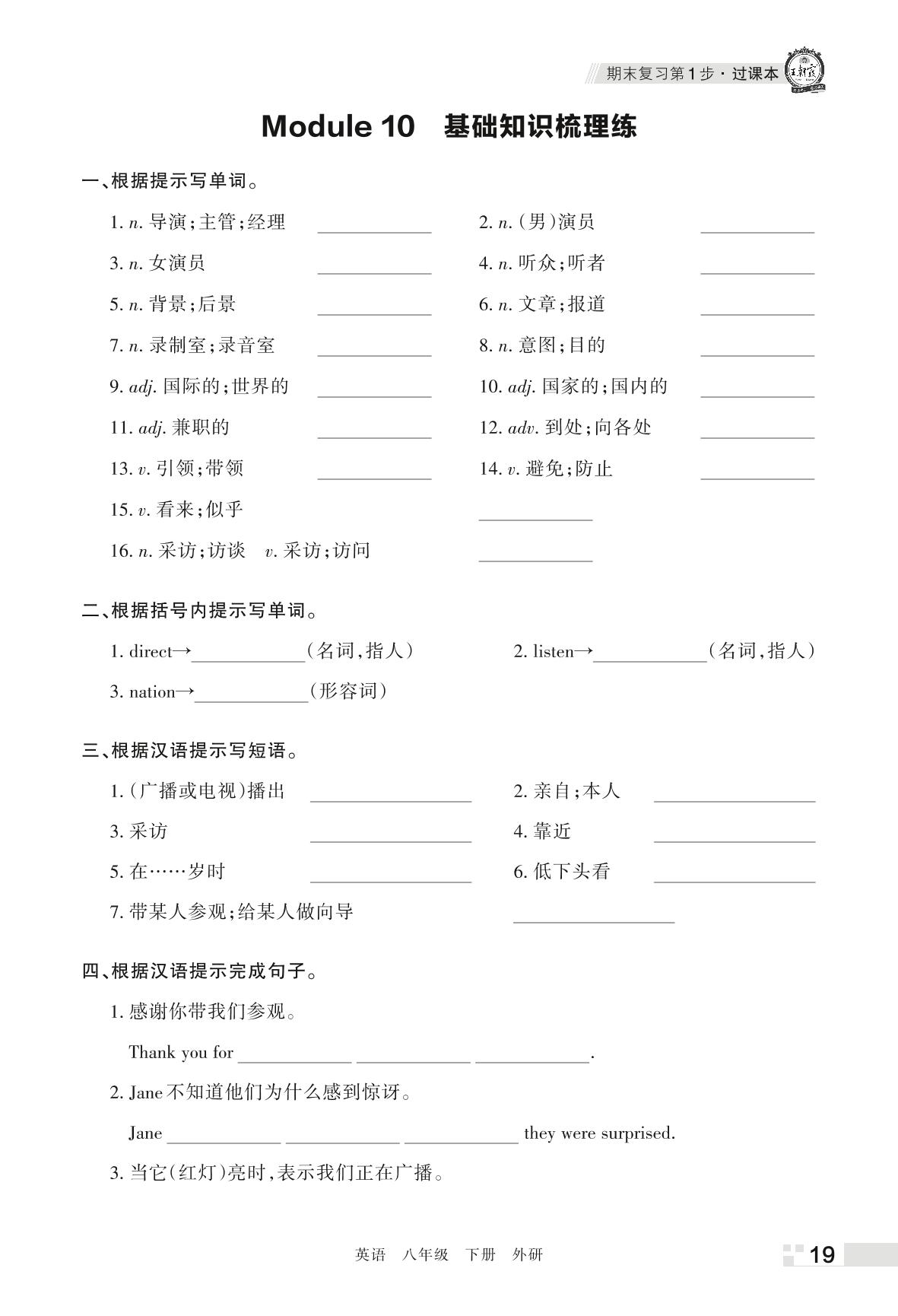 王朝霞期末过课本——Module 10 基础知识梳理练八年级下册英语(外研版)