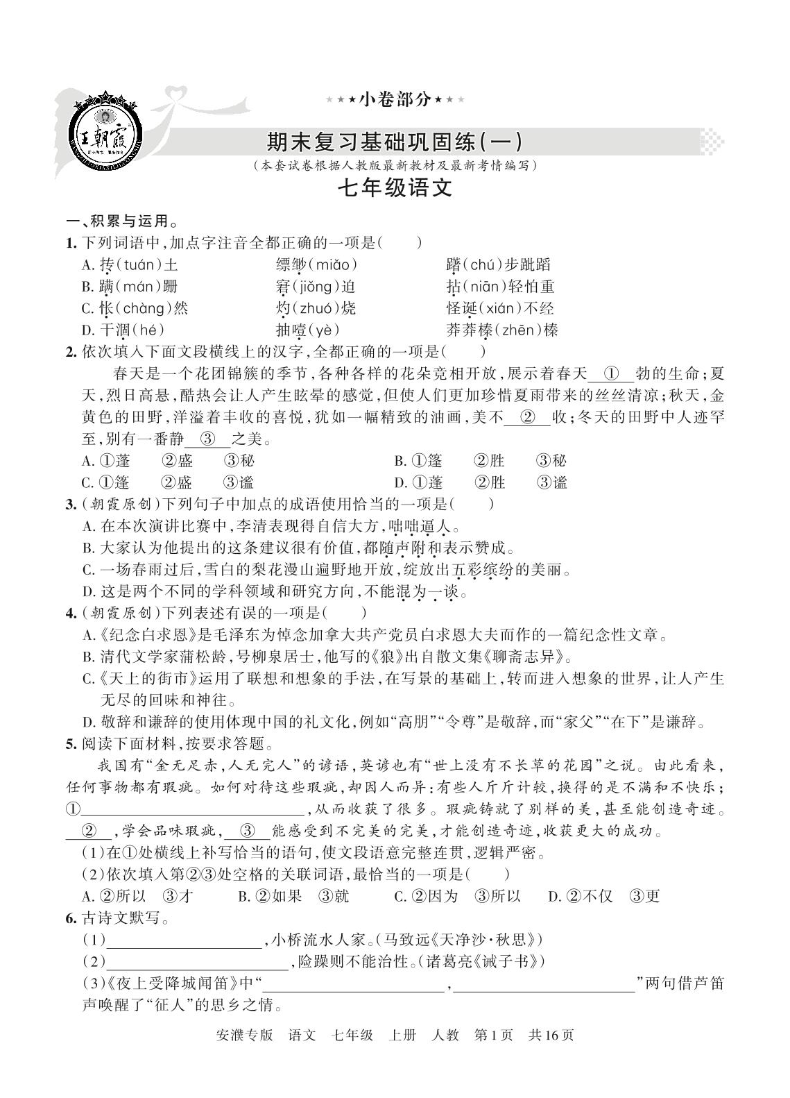 王朝霞期末小卷七年级上册语文(人教版)_R21080211033【0】